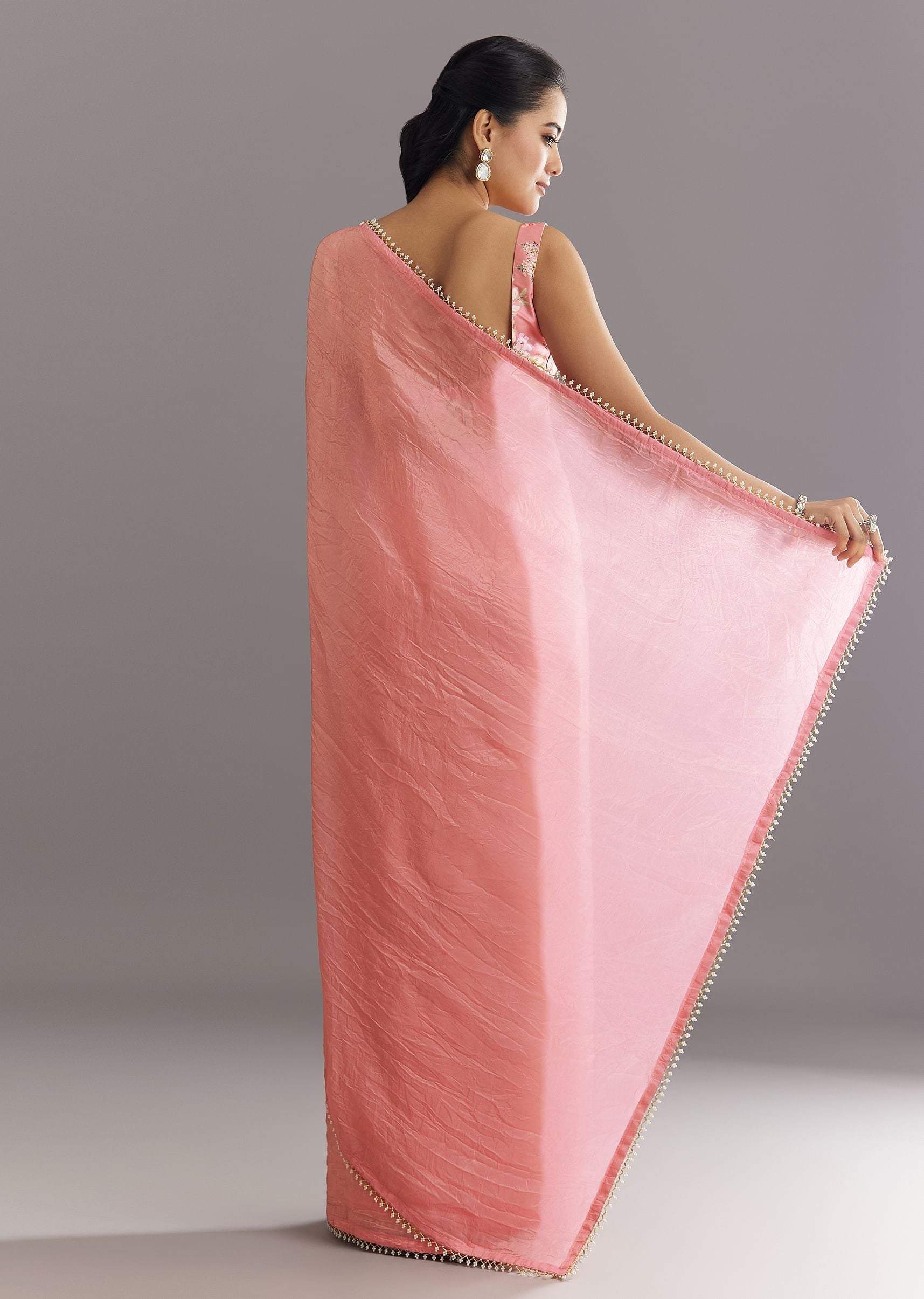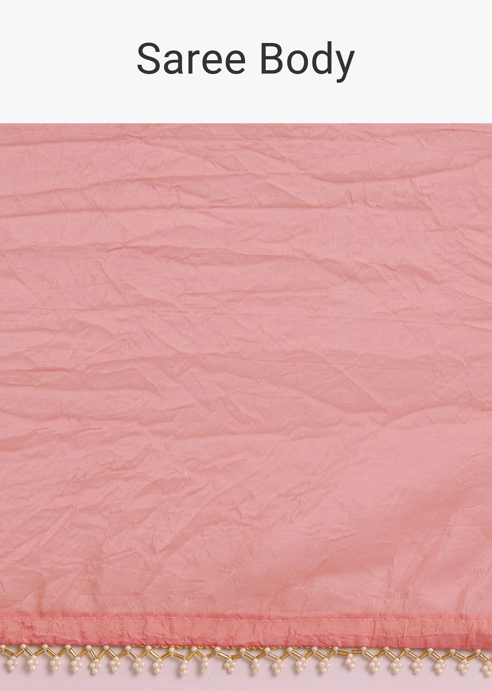 Pink Crushed Tissue Saree With Cutdana And Moti Embellished Border