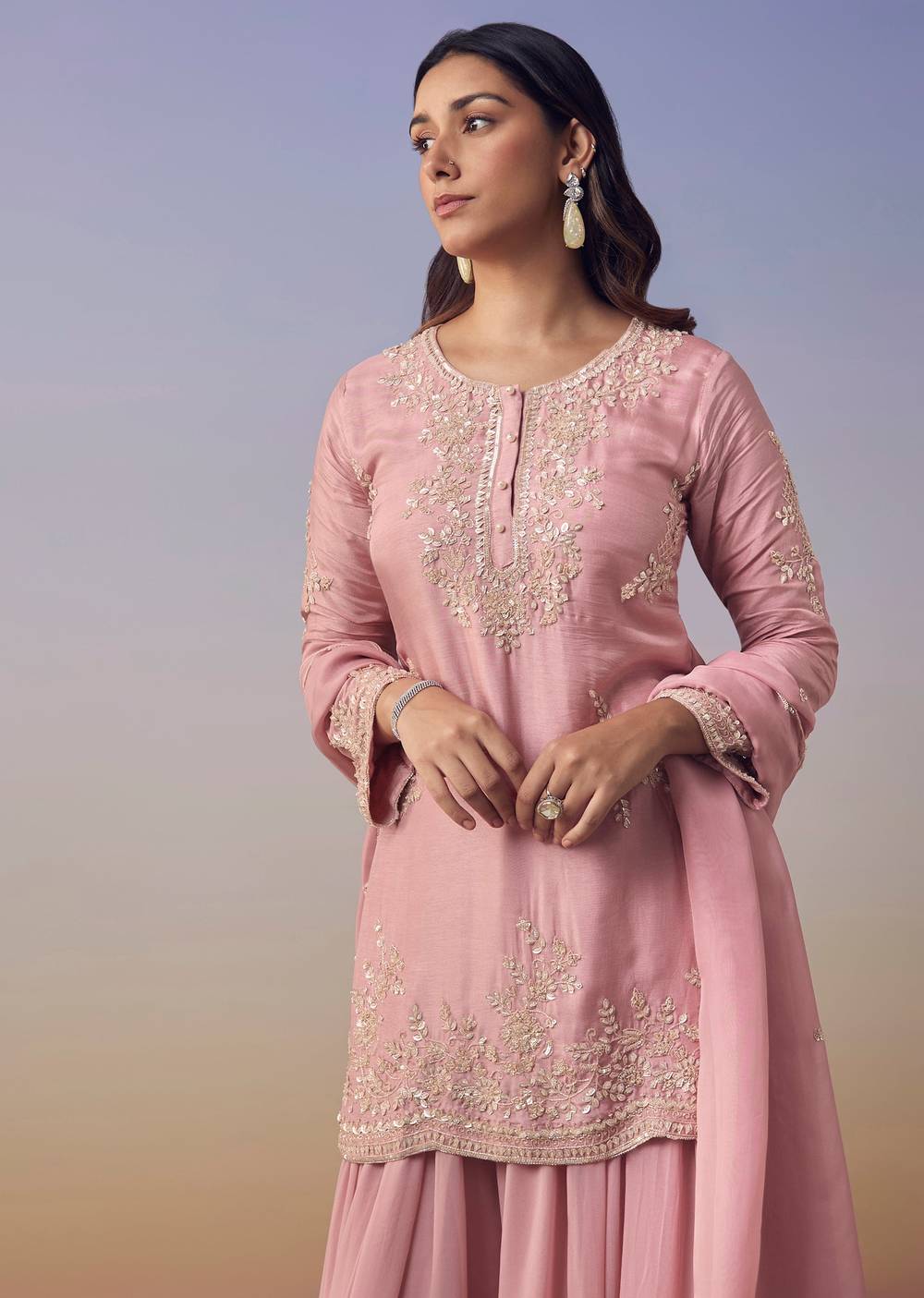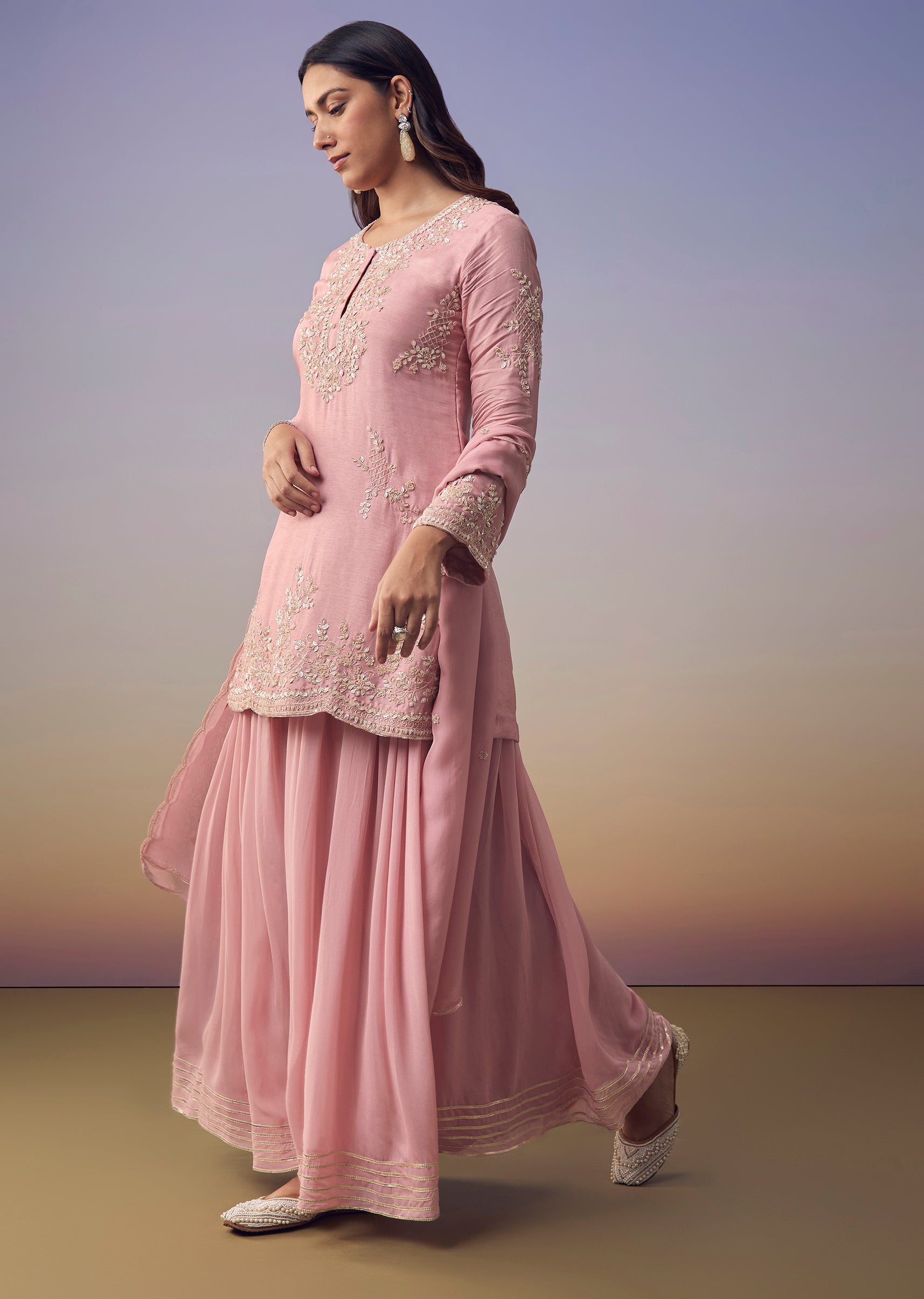 Pink Cutdana Embellished Kurta And Palazzo Set