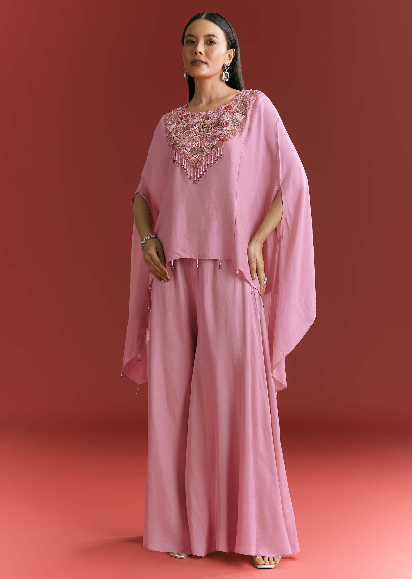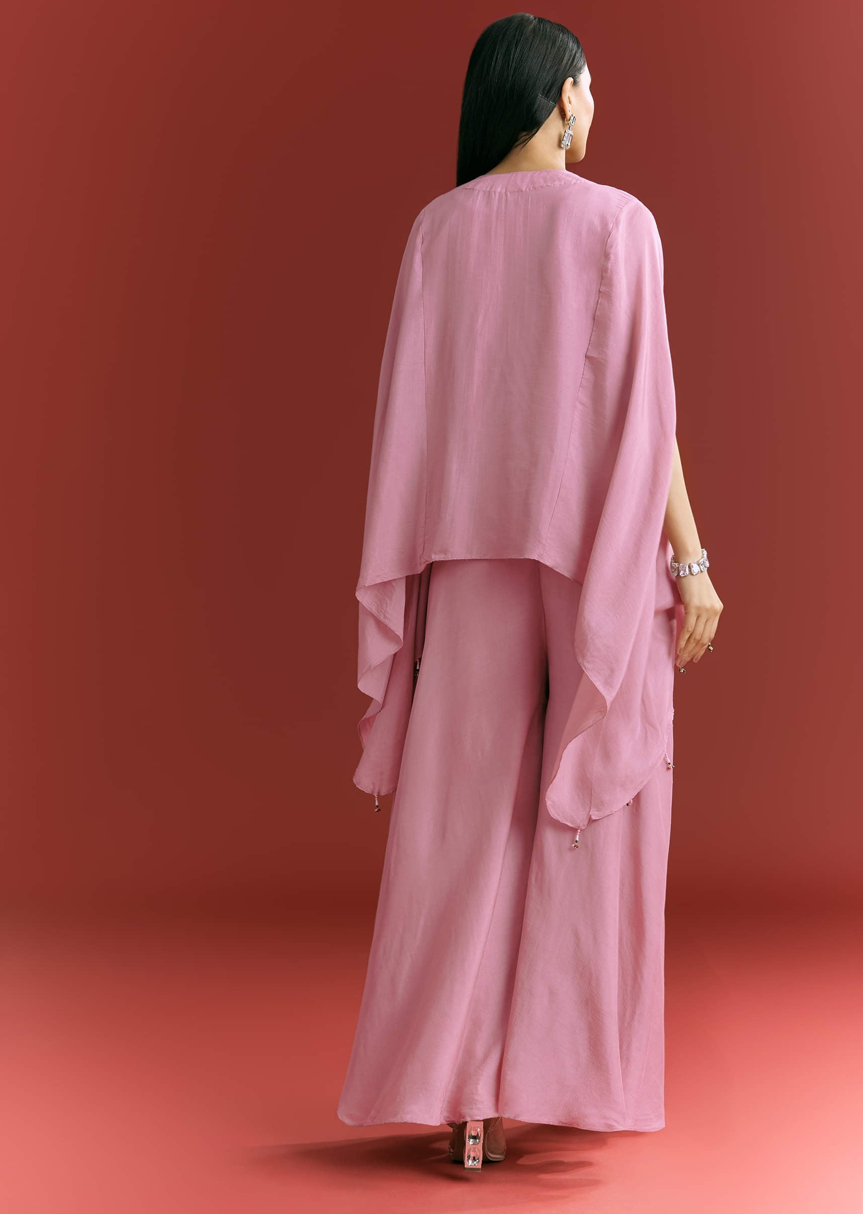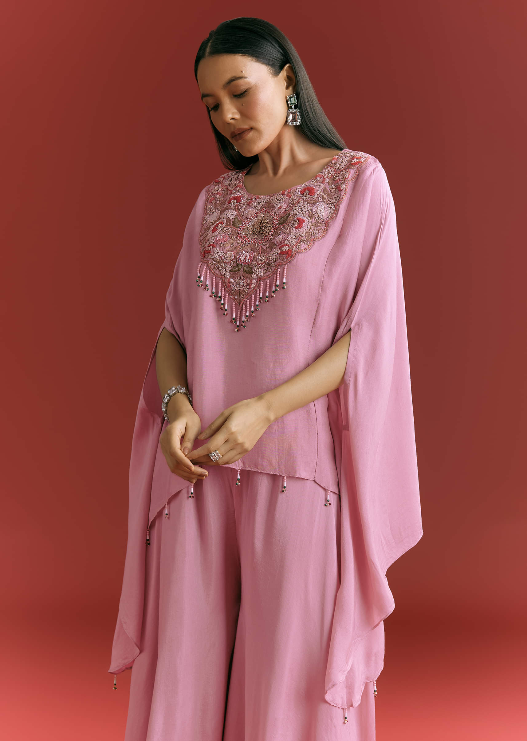 Pink Dola Silk Kaftaan Indowestern Suit With Zardosi Work