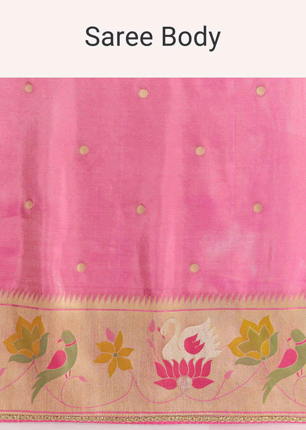 Pink Dola Silk Paithani Saree With Dollar Butti And Multicolor Motif