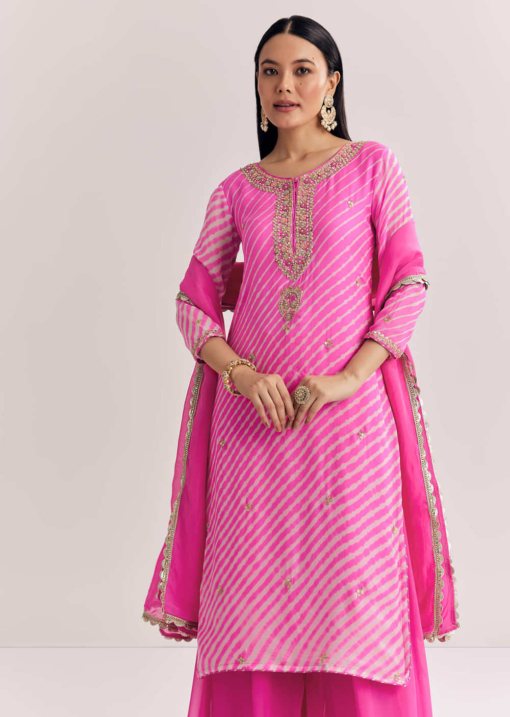 Pink Dola Silk Palazzo Suit With Zardosi Work