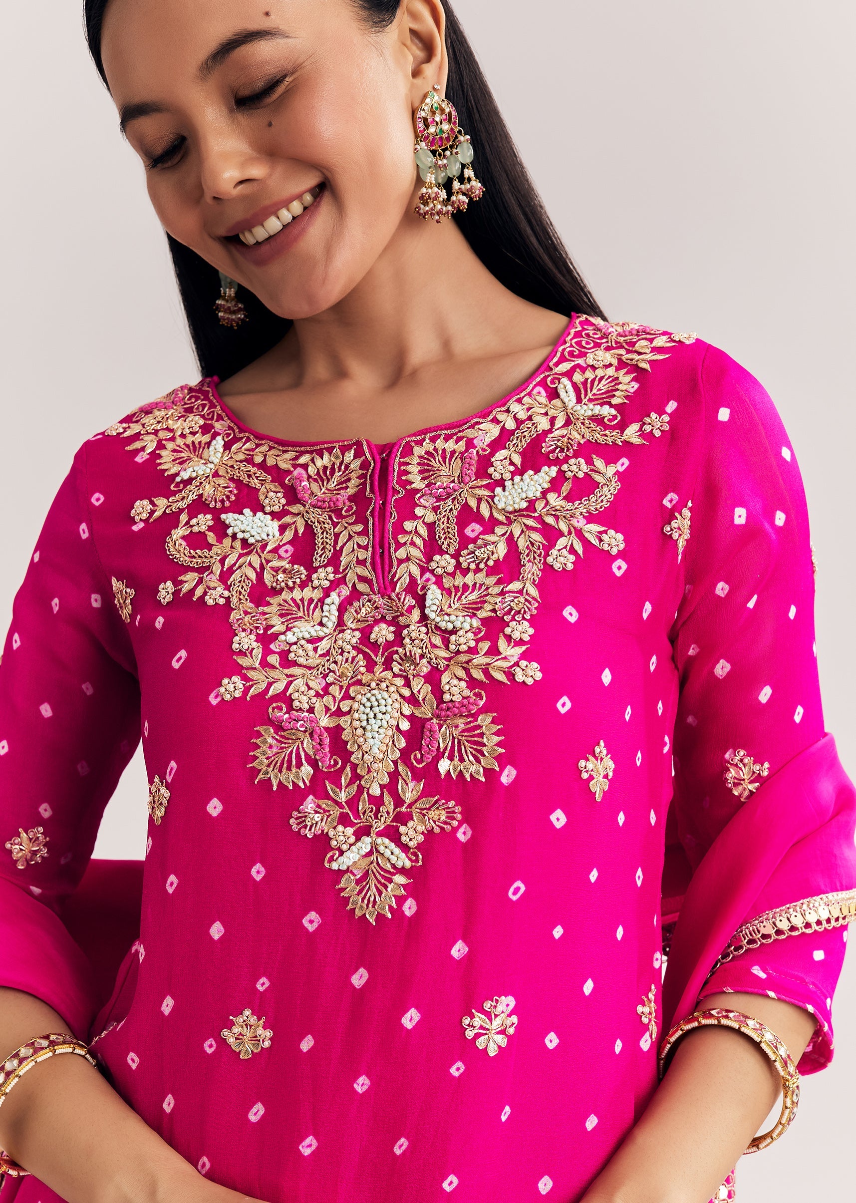 Pink Dola Silk Sharara Suit With Embroidered Print