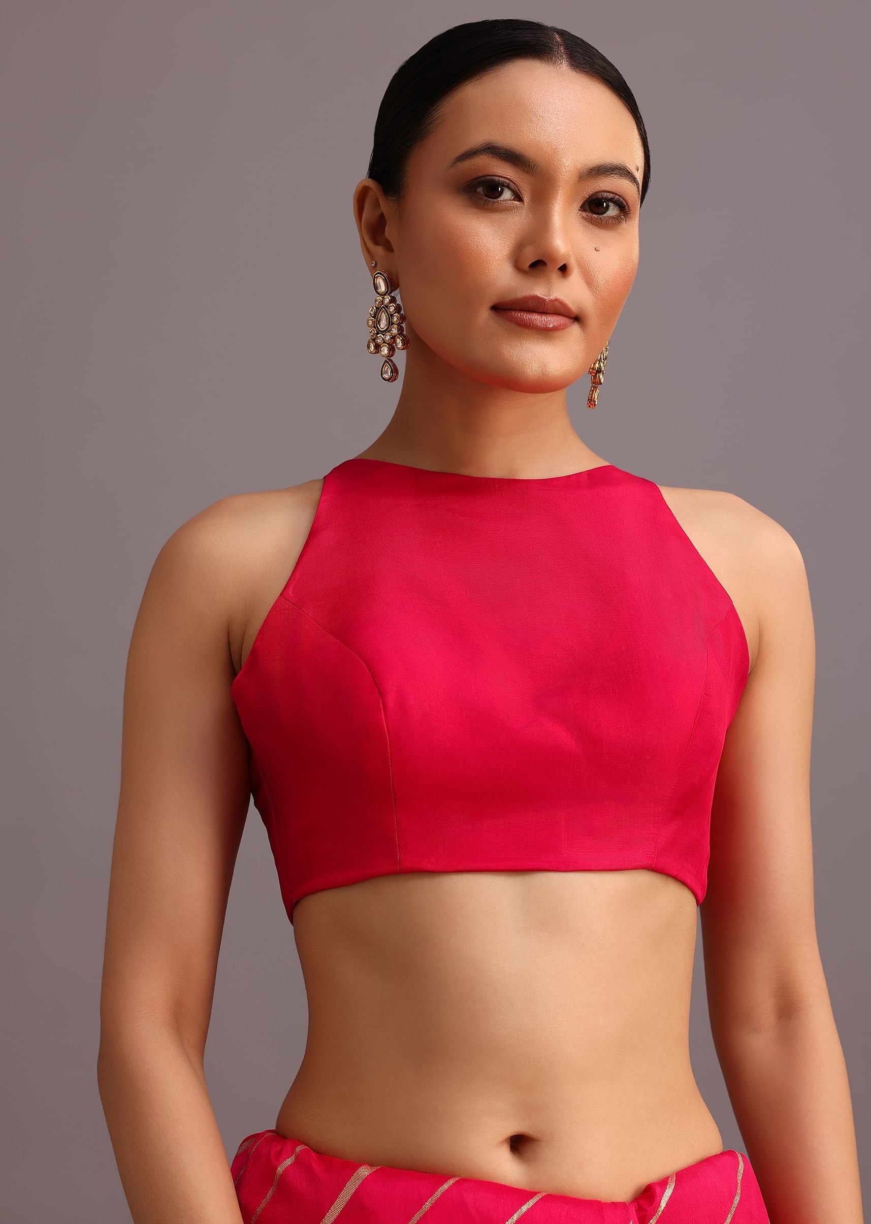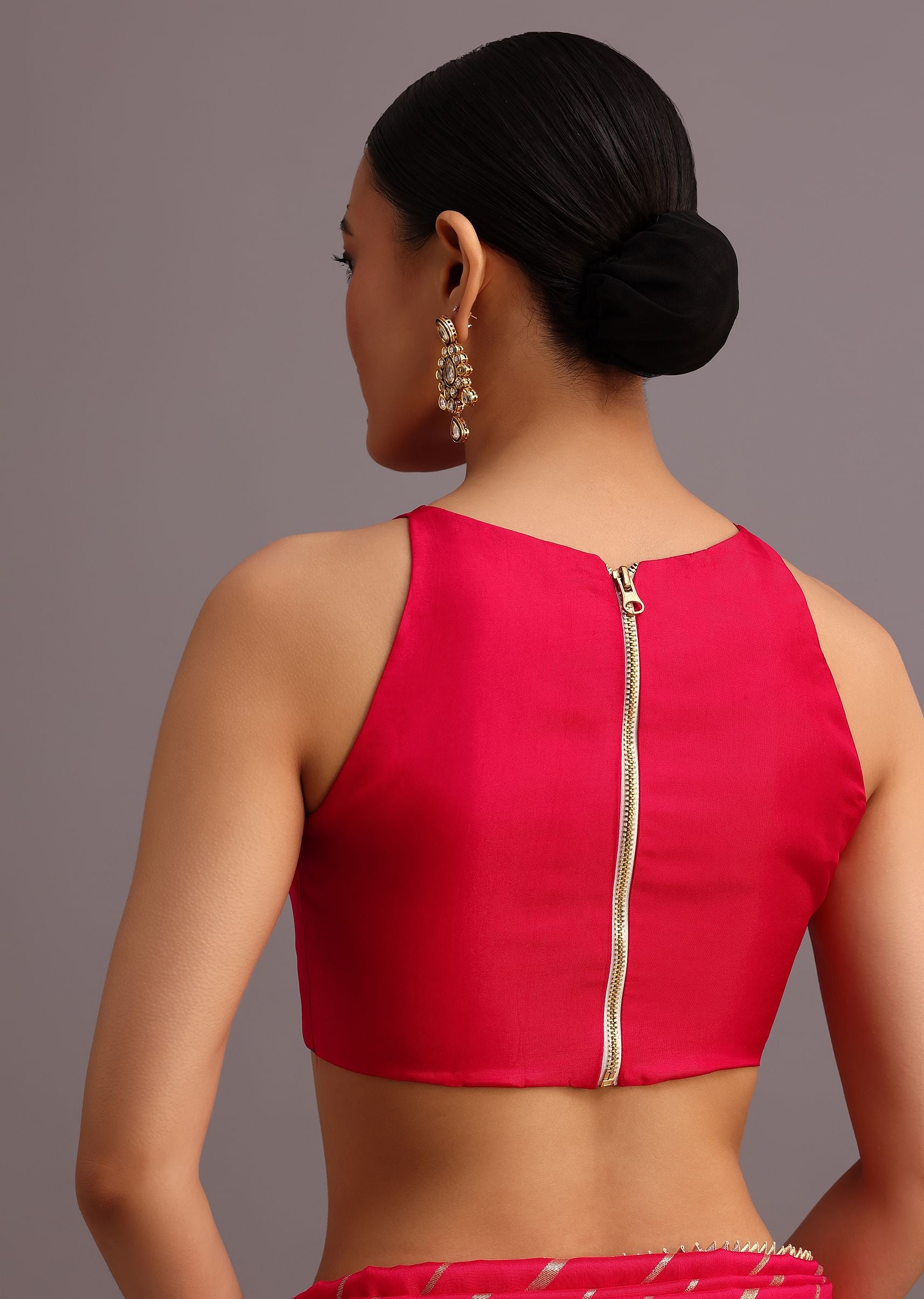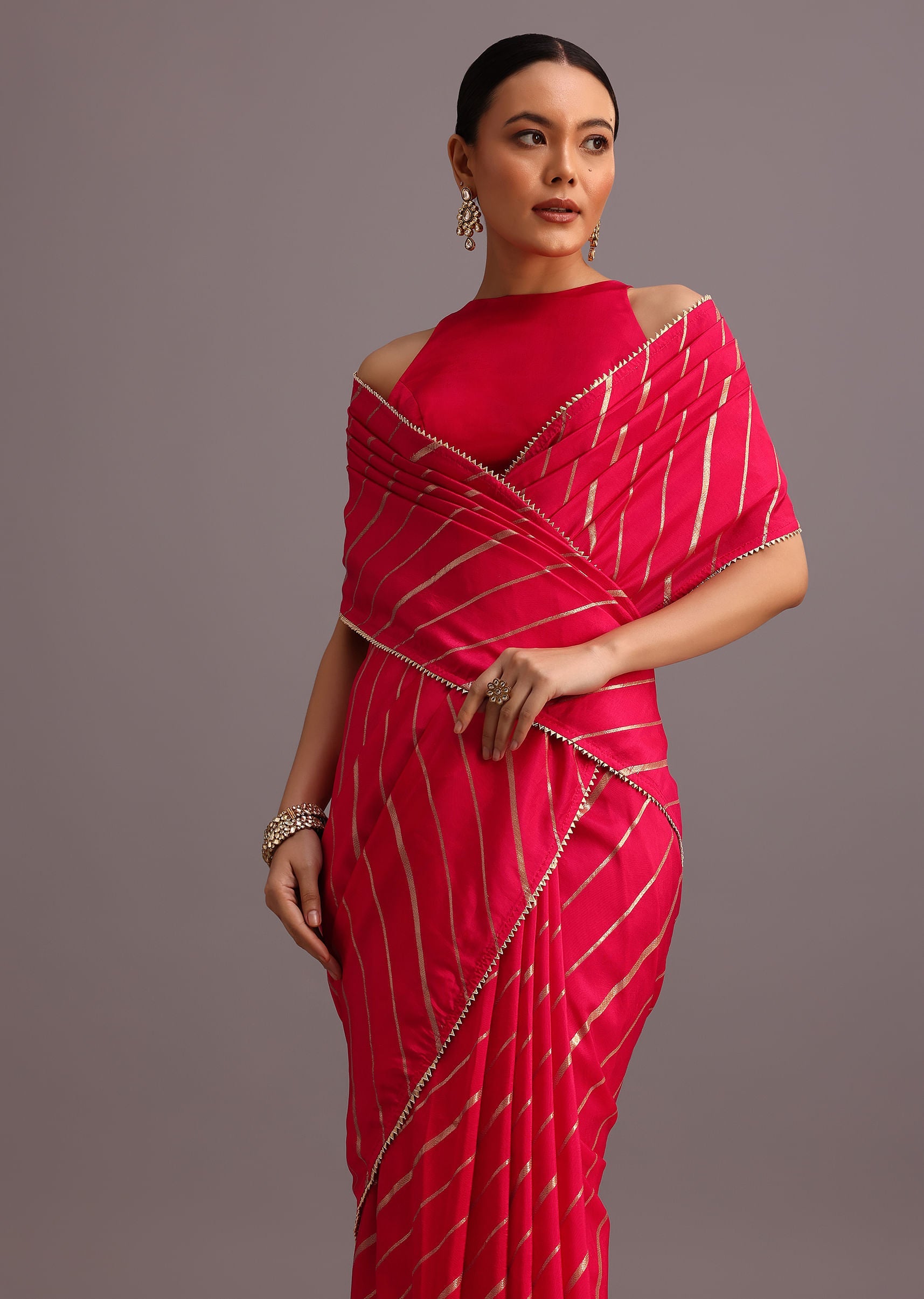 Pink Dola Silk Woven Saree And Gota Patti Border With Unstitched Blouse