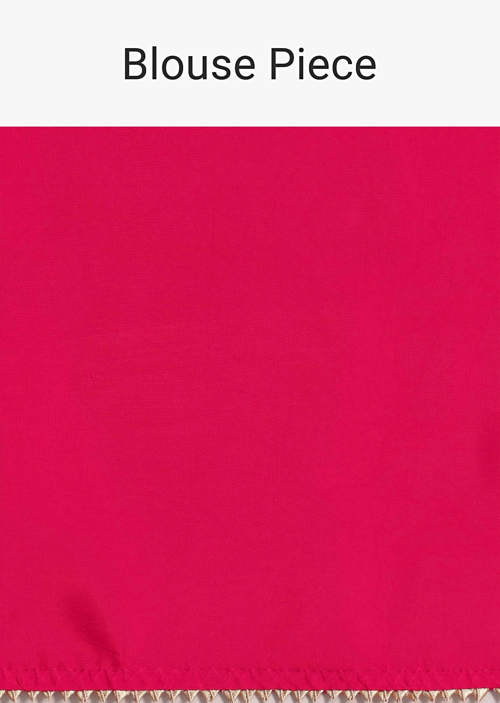 The ethereal pink Dola silk saree, its delicate weave shimmering in the light. Adorned with intricate Gota Patti embroidery, the border adds a touch of regal elegance. To complete the ensemble, an unstitched blouse offers a blank canvas for your personal style. This dreamy combination is perfect for celebrating life's special moments, radiating both sophistication and grace. Awarded as the Most Trusted Brand, we're delivering styles you love, just as promised.