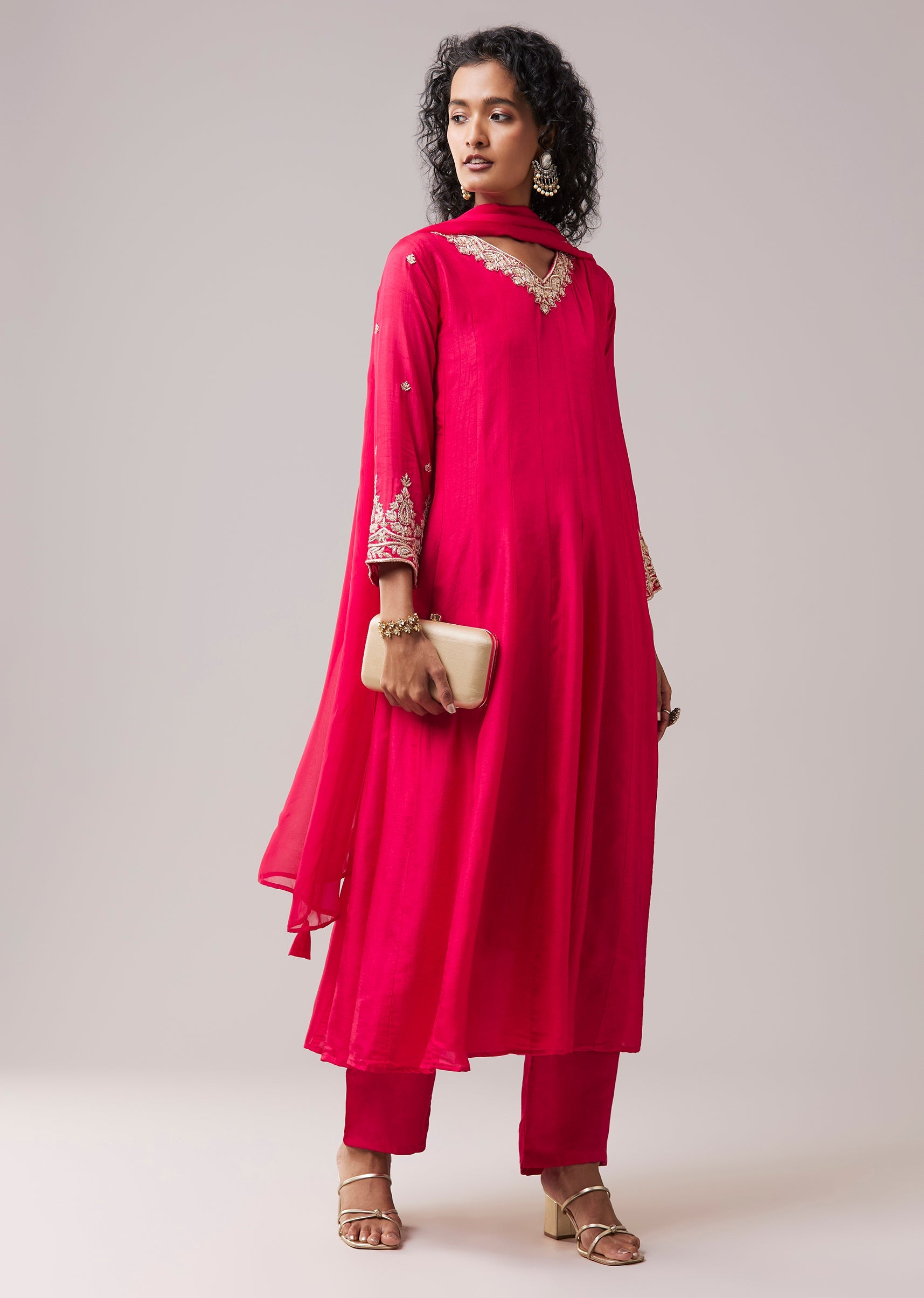 Pink Dola Silk Zardozi Embellished Anarkali Set