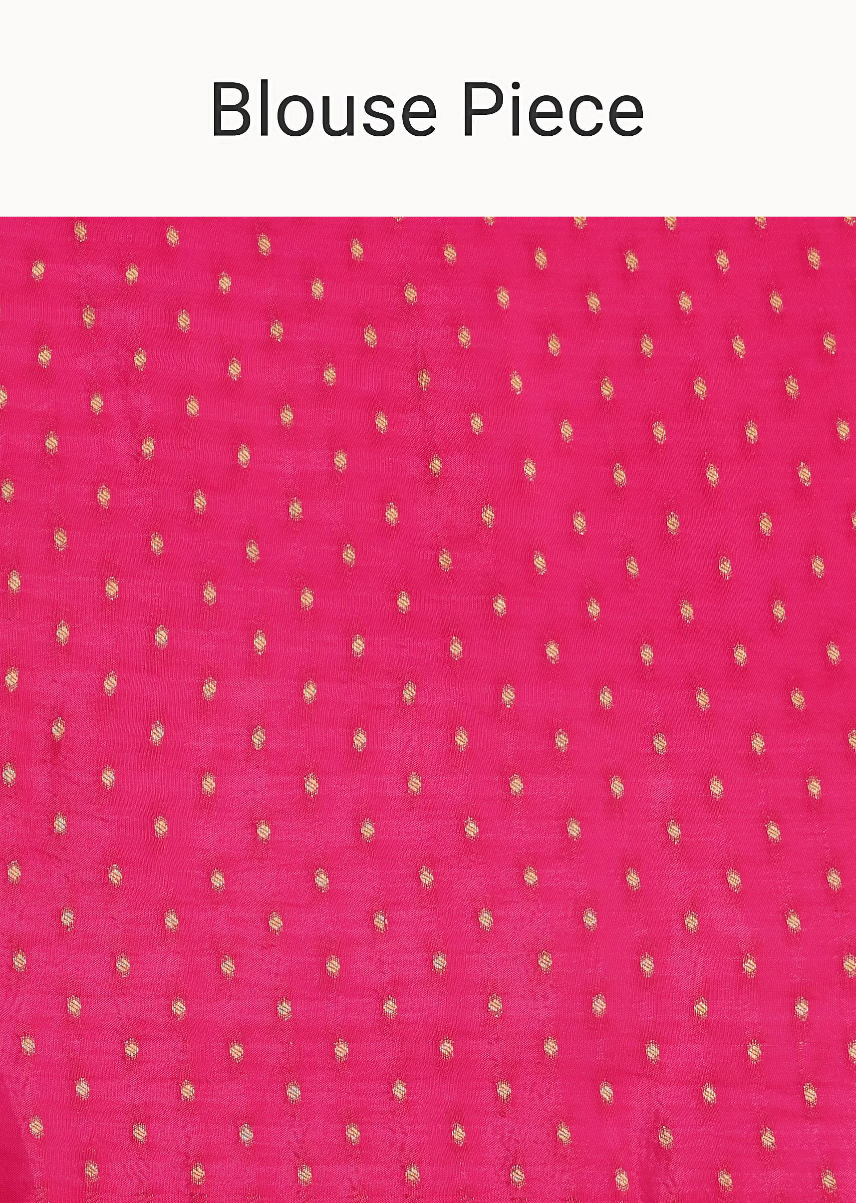 A cotton kota saree, painted in dreamy hues of pink and adorned with intricate zari embroidery, is a masterpiece of elegance. Its hand dyed leheriya pattern adds a touch of... More Product Details