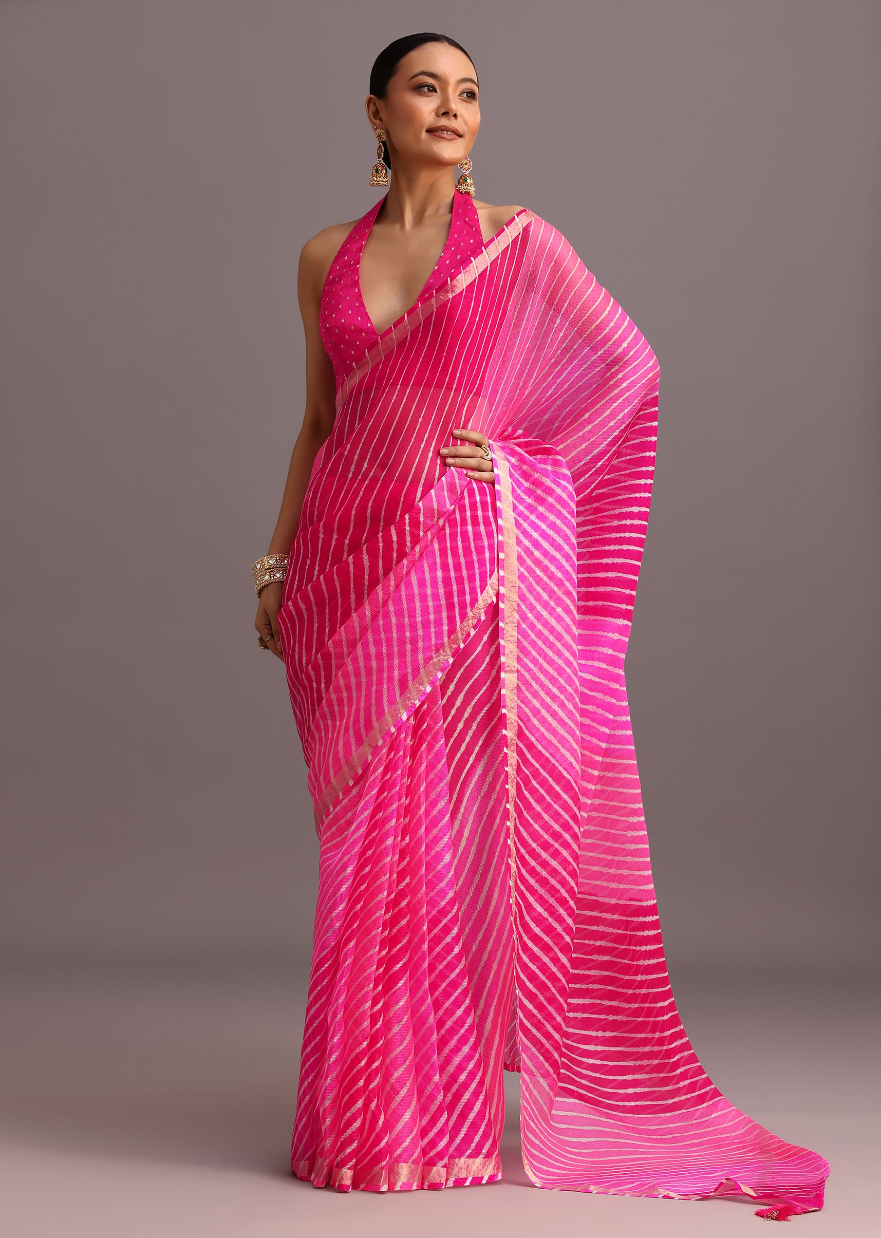 A cotton kota saree, painted in dreamy hues of pink and adorned with intricate zari embroidery, is a masterpiece of elegance. Its hand dyed leheriya pattern adds a touch of bohemian charm, making it the perfect choice for festive occasions. Zari border length may vary. Awarded As The Most Trusted Brand We'Re Delivering Styles You Love Just As Promised.
