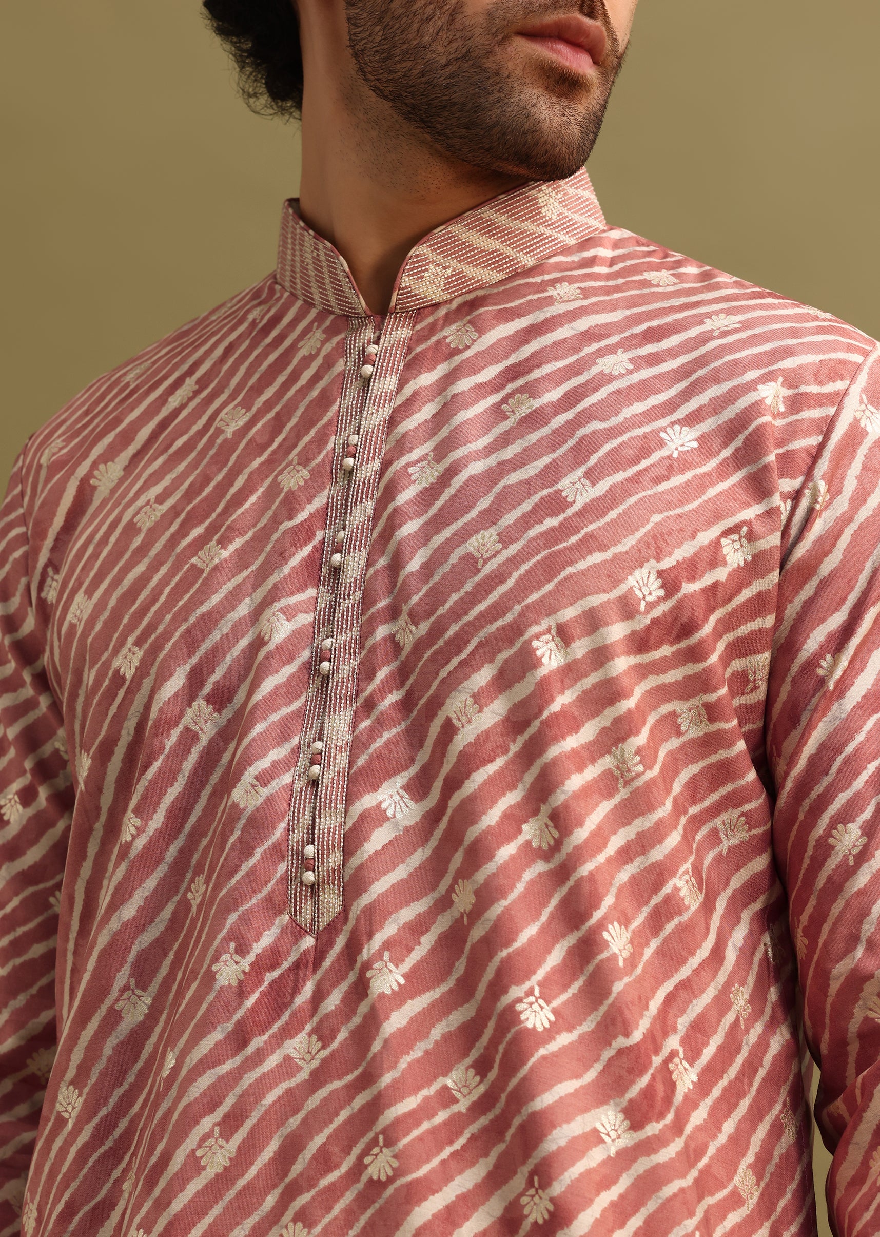 Invoke the divine in this vibrant pink lehariya kurta set, perfect for pujas. Delicate embroidery adds a touch of elegance, while the relaxed silhouette ensures effortless style for any casual... More Product Details