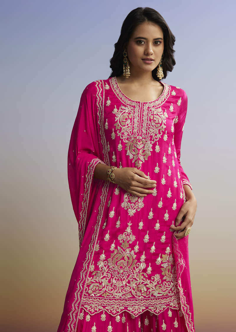 Pink Embroidered Palazzo Set In Chinon