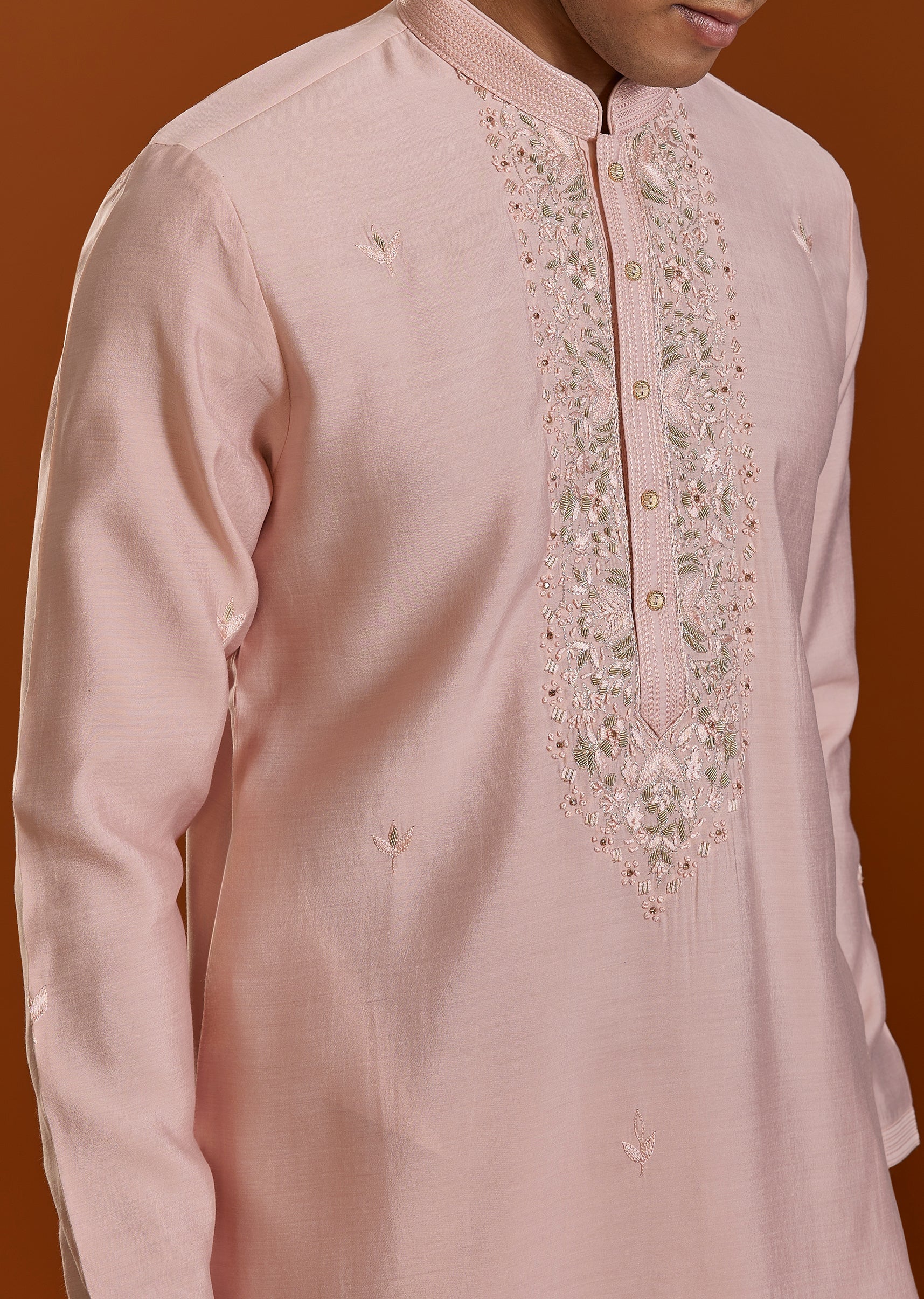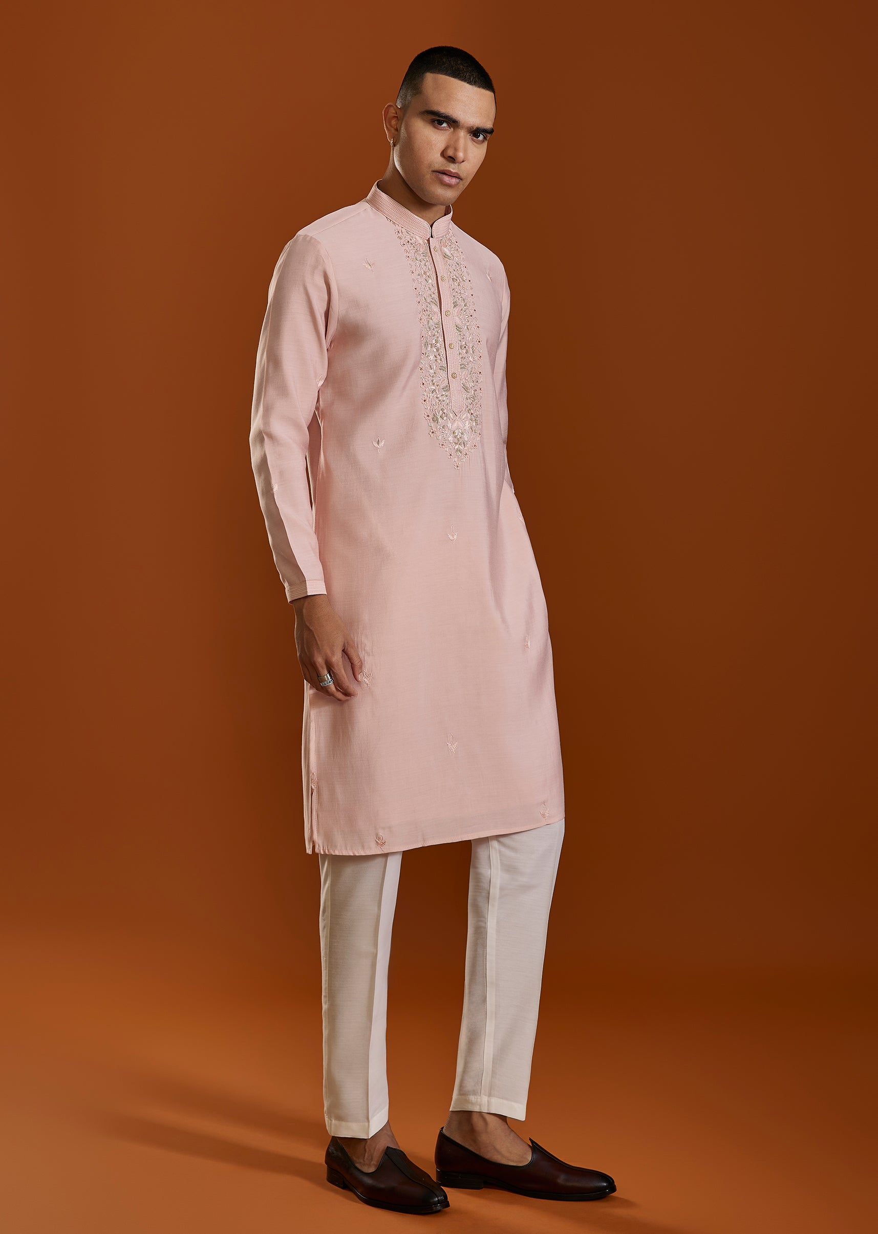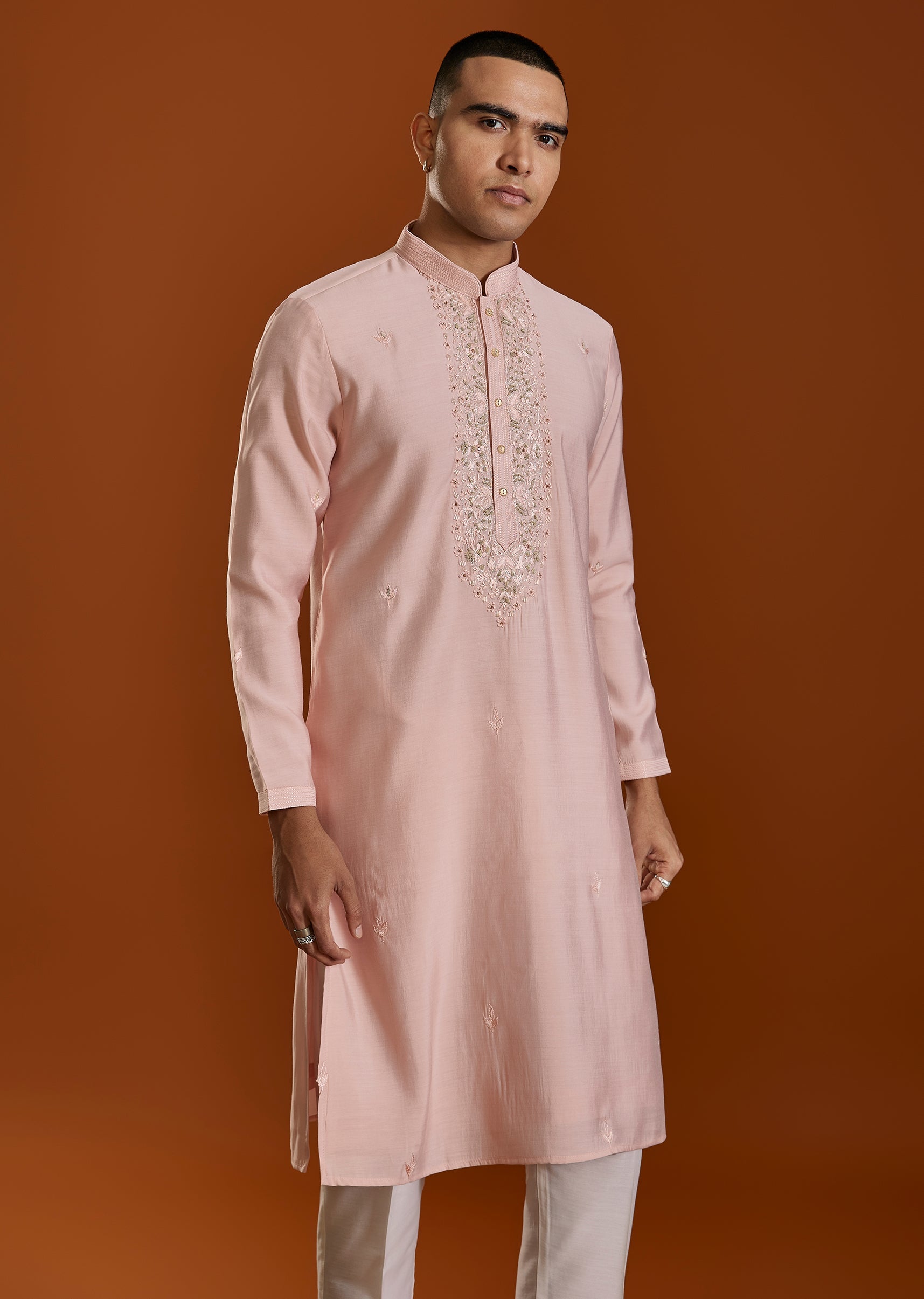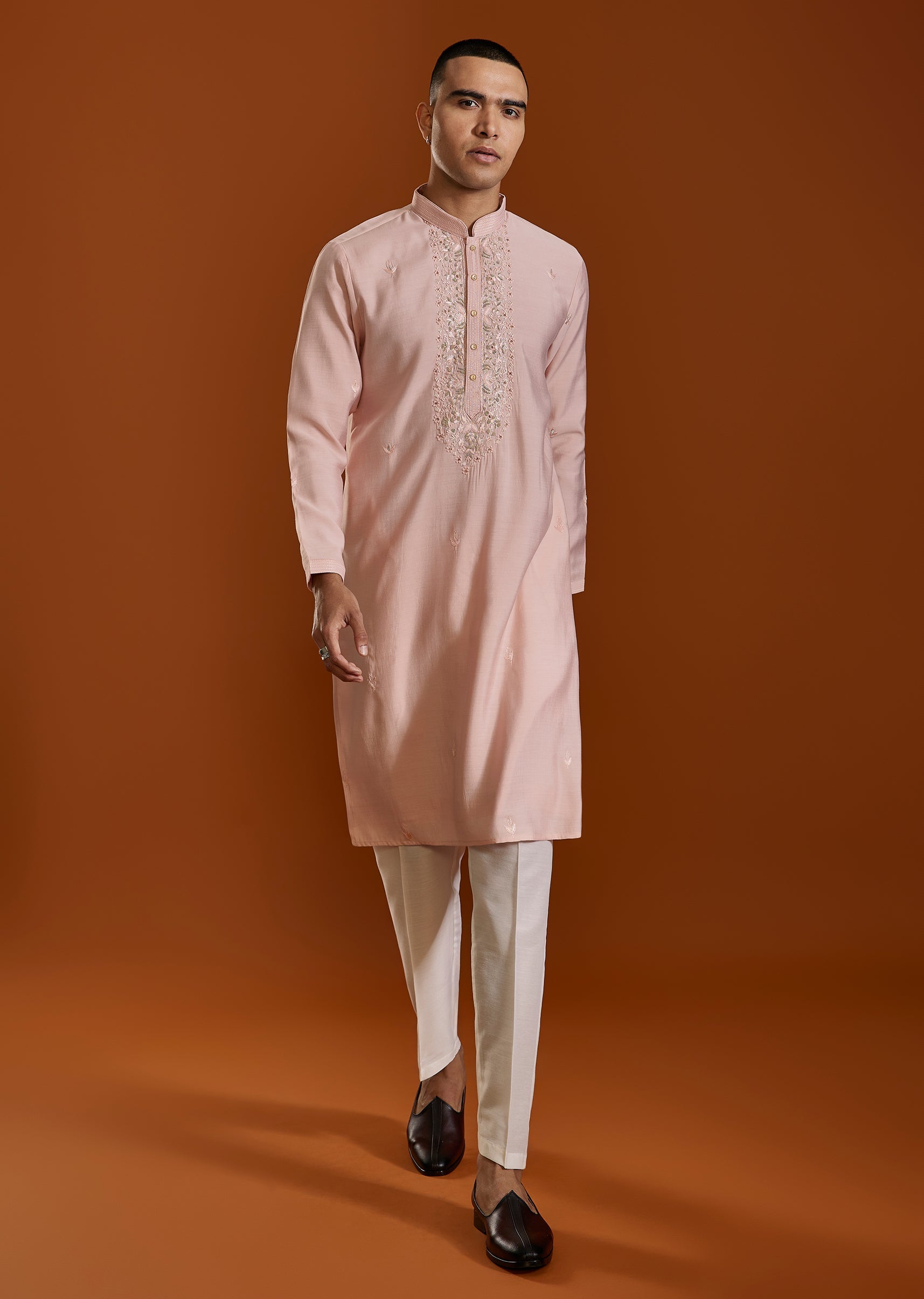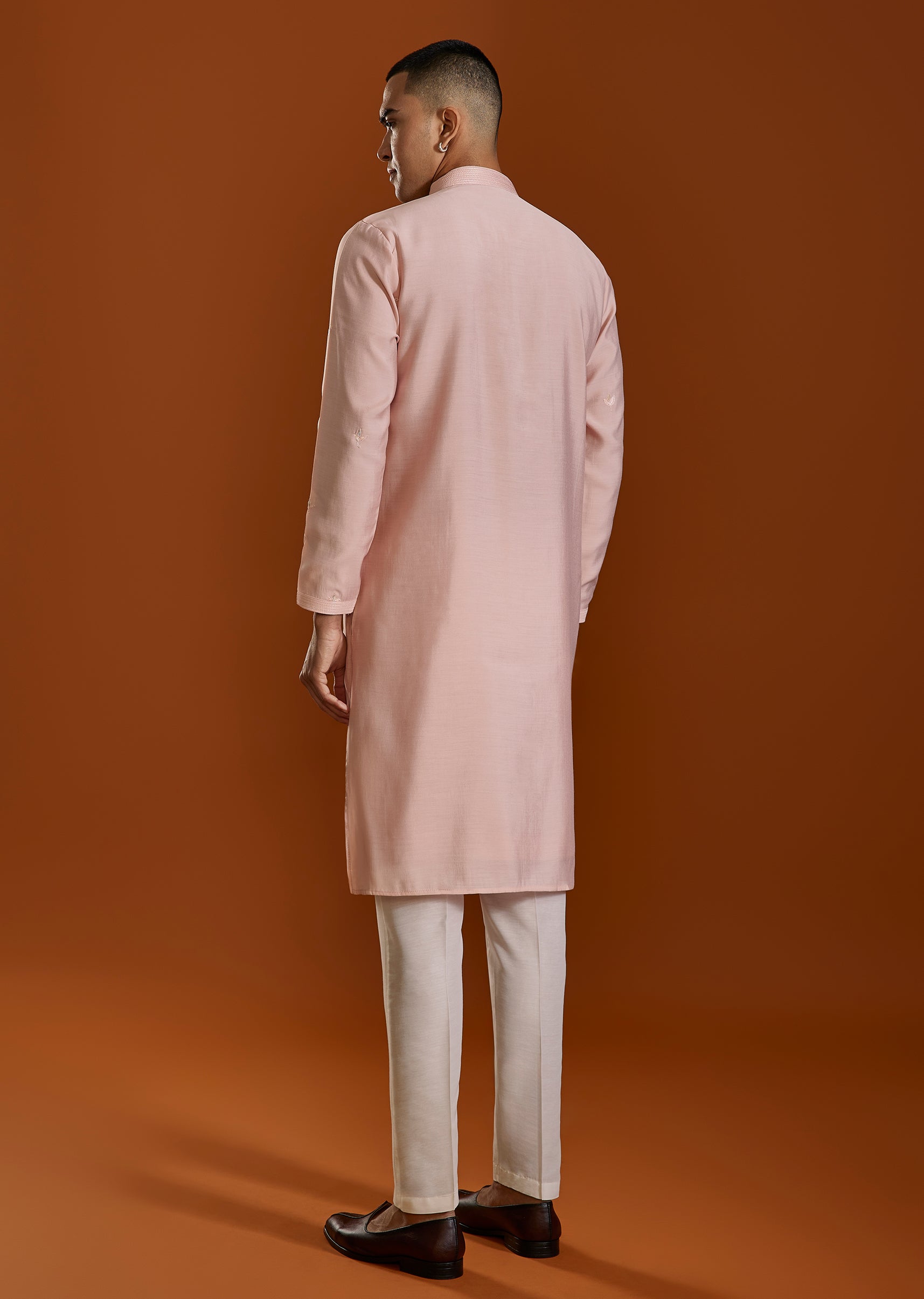 A soft pink Viscose kurta set detailed with delicate thread embroidery—perfect for festive days and intimate celebrations. The subtle pastel tone adds freshness while maintaining traditional charm. Awarded as the Most Trusted Brand, we're delivering styles you love, just as promised.