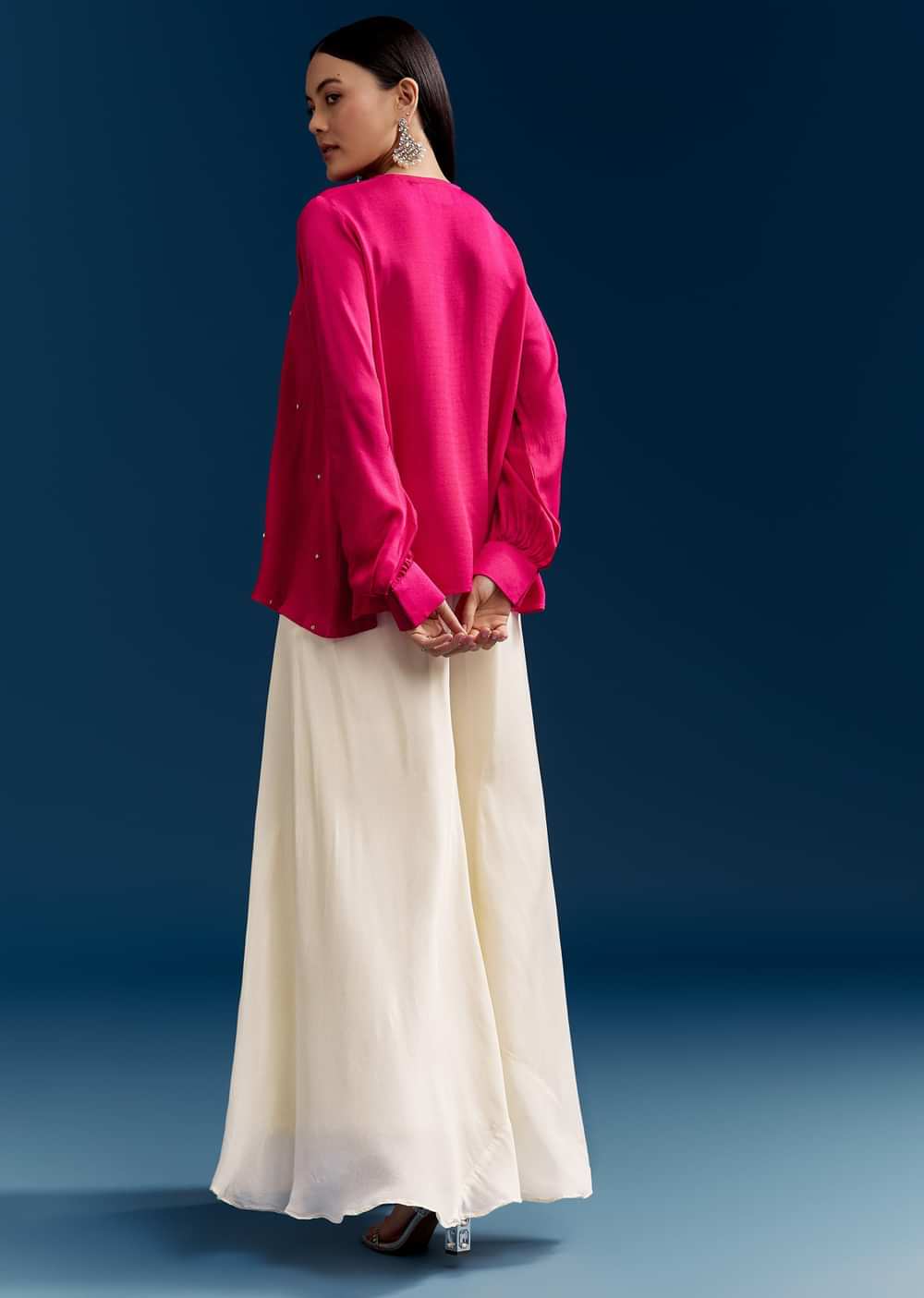 A festive classic with a twist, this pink crop top is designed in soft georgette and adorned with mirror work. The full sleeves and round neckline offer a modest contrast to the cropped length, making it a great choice for layering with skirts, palazzos, or lehengas. Awarded as the Most Trusted Brand, we're delivering styles you love, just as promised.