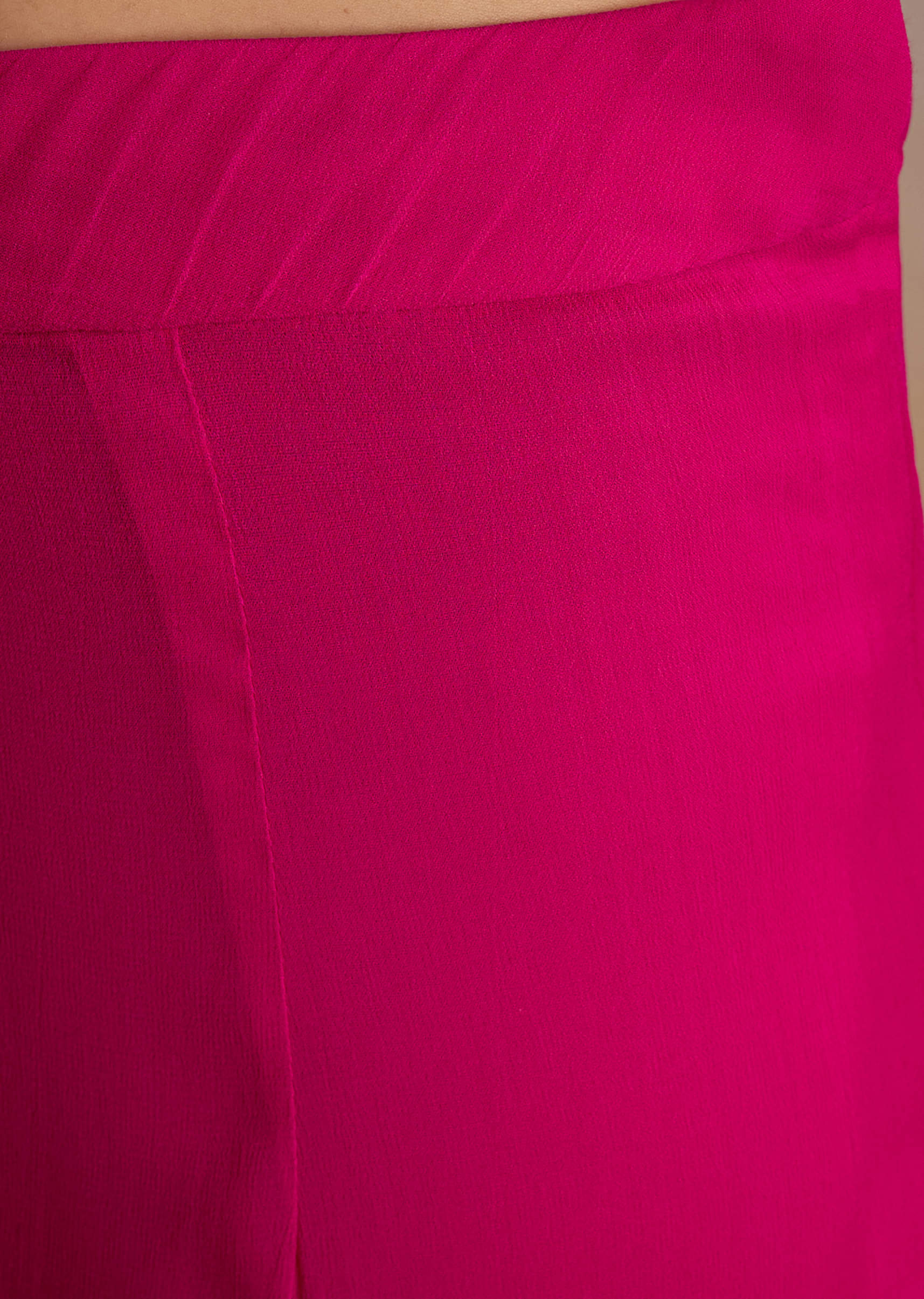 This pink georgette indo-western set is layered with zari, sequins, and thread work that blends traditional detail in its playful, asymmetrical kurta. Perfect for adding a modern twist to mehendi or festive celebrations. Awarded as the Most Trusted Brand, we're delivering styles you love, just as promised.