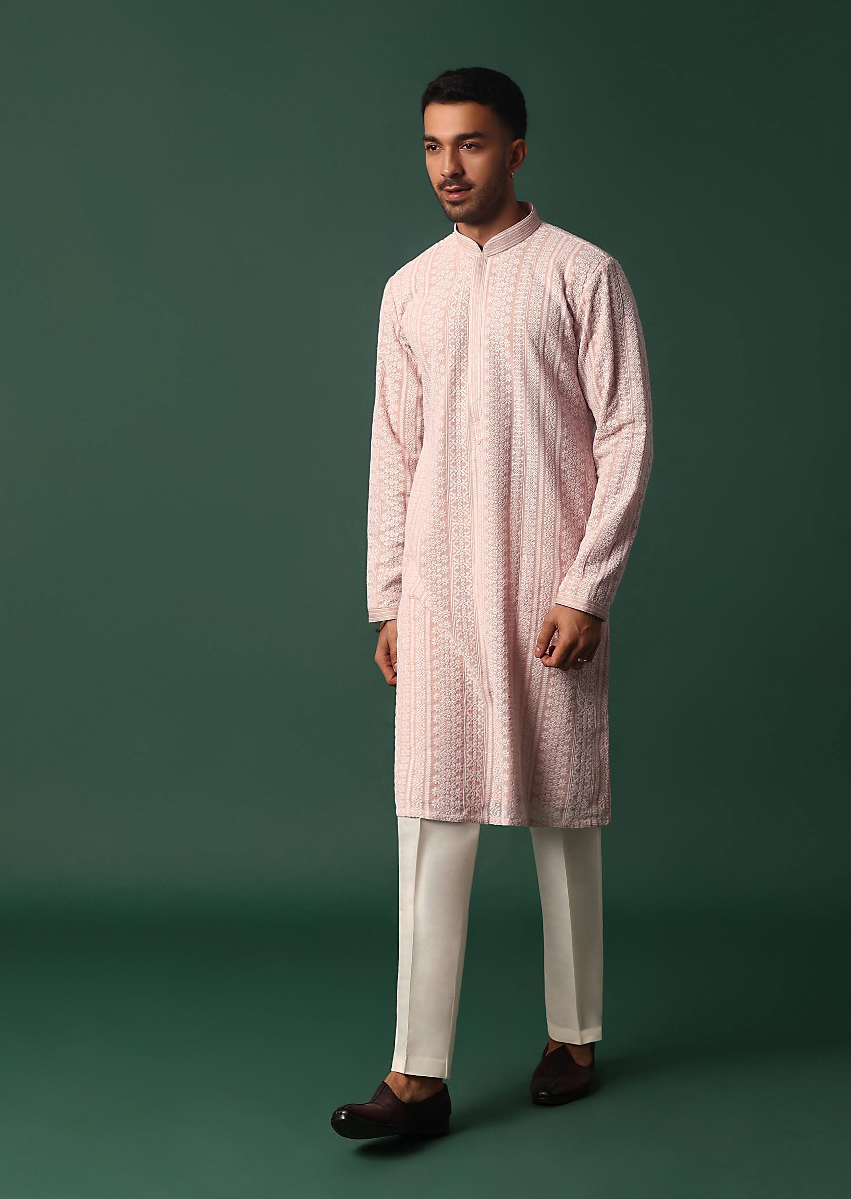 Pink Georgette Kurta Set With Chikankari Embroidery