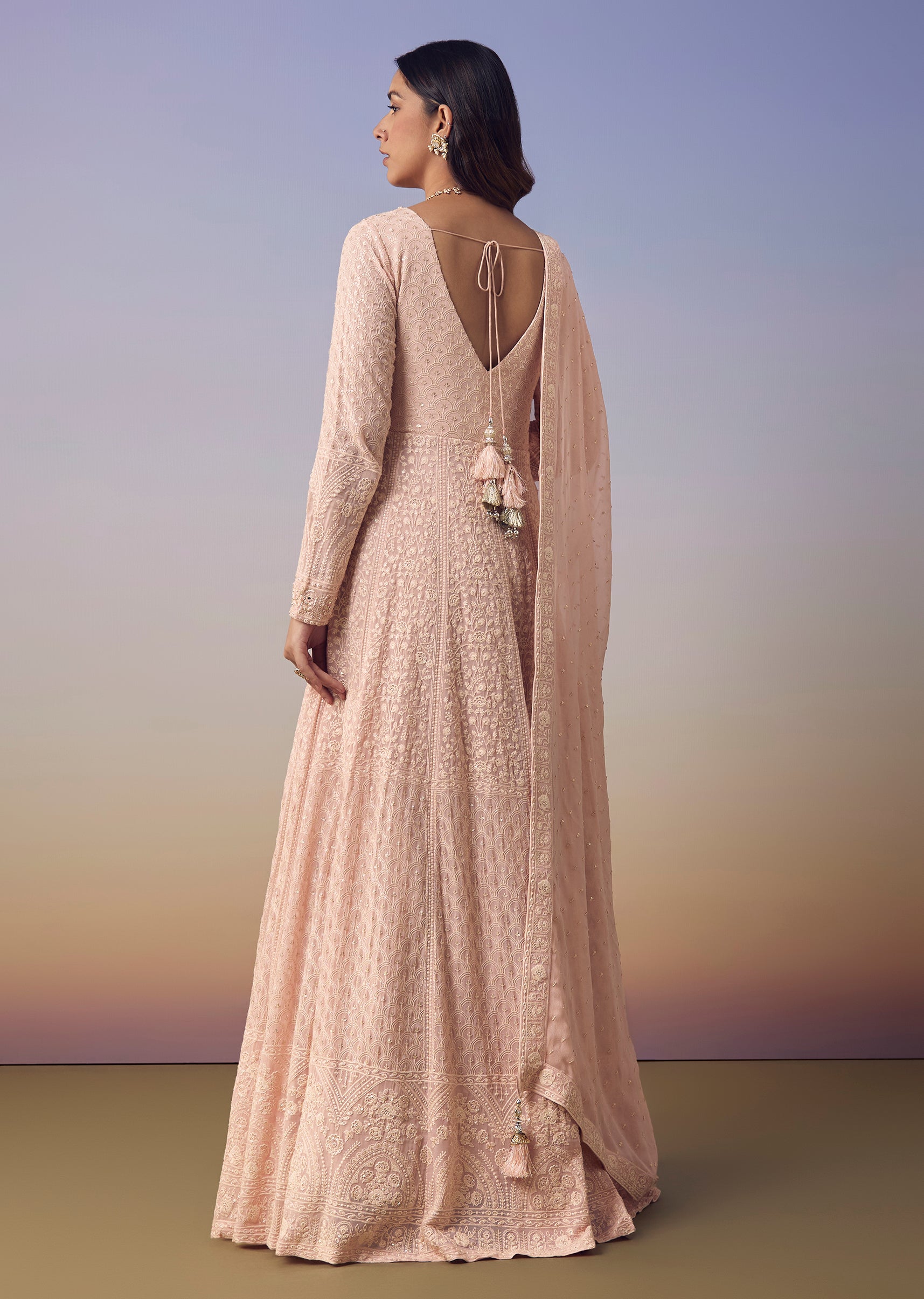 Step into feminine charm with this pink floor length anarkali crafted in airy georgette and embellished with shimmering sequins and delicate thread work that add a radiant festive touch. The... More Product Details