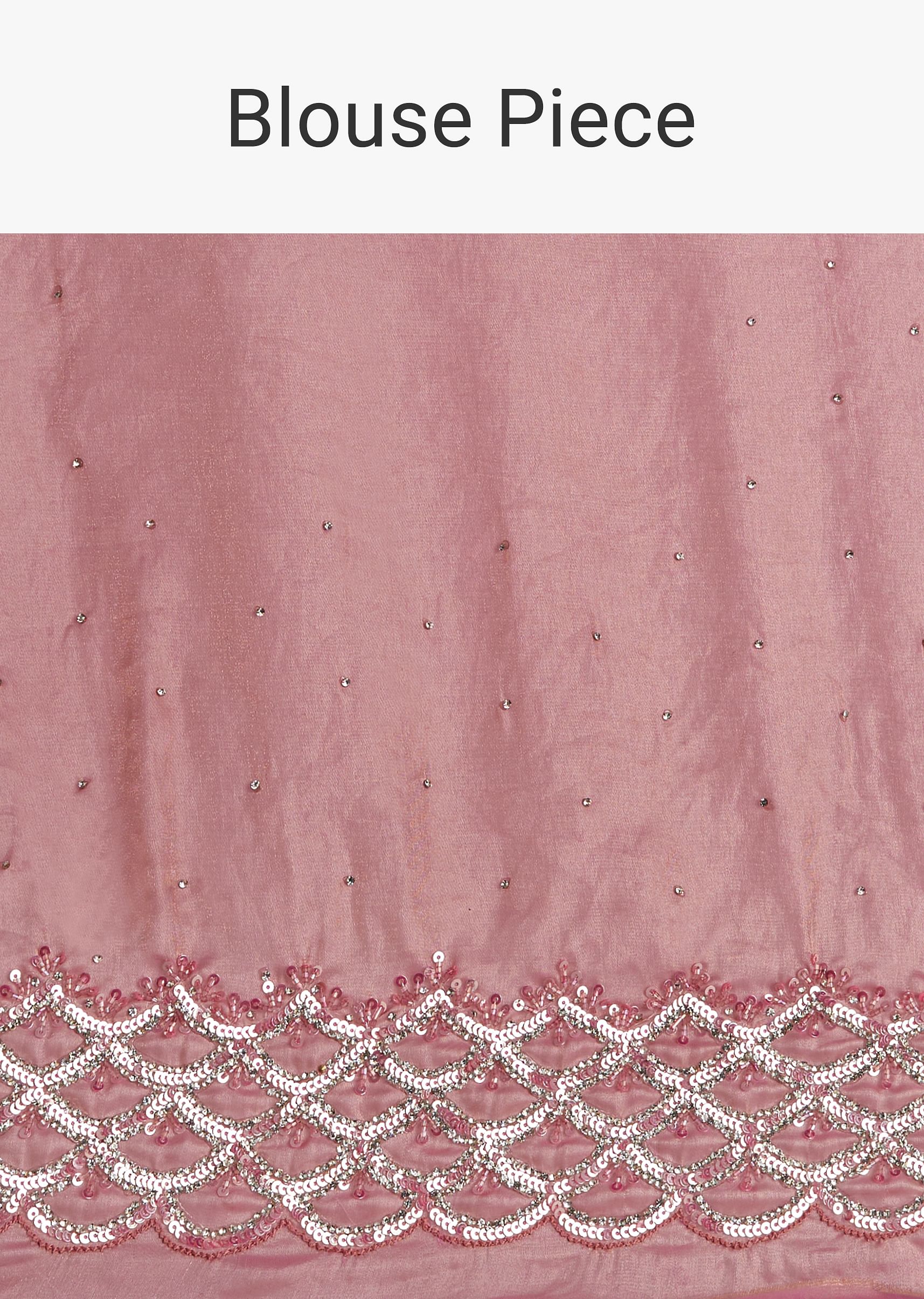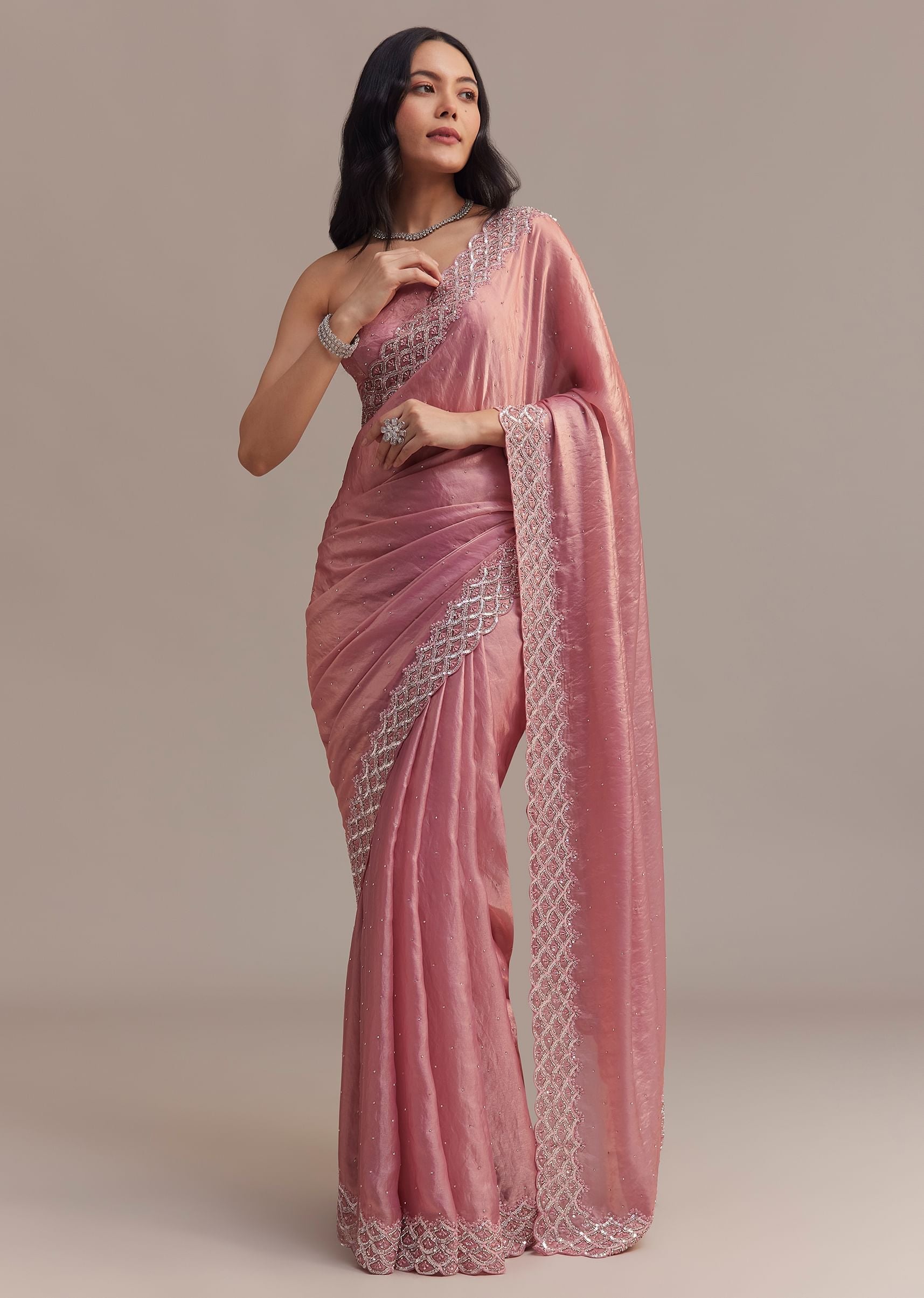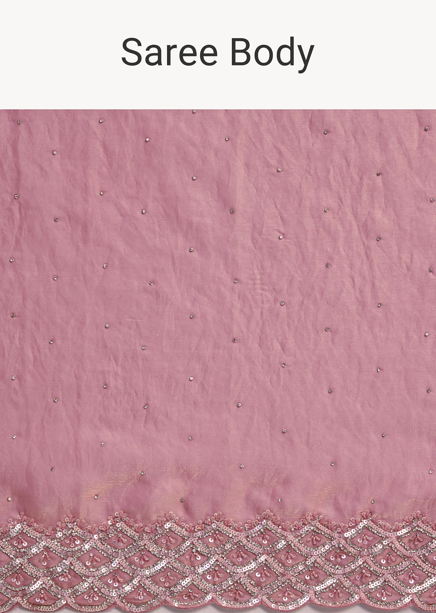 Pink Glass Tissue Saree With Sequins And Moti Embroidered Border