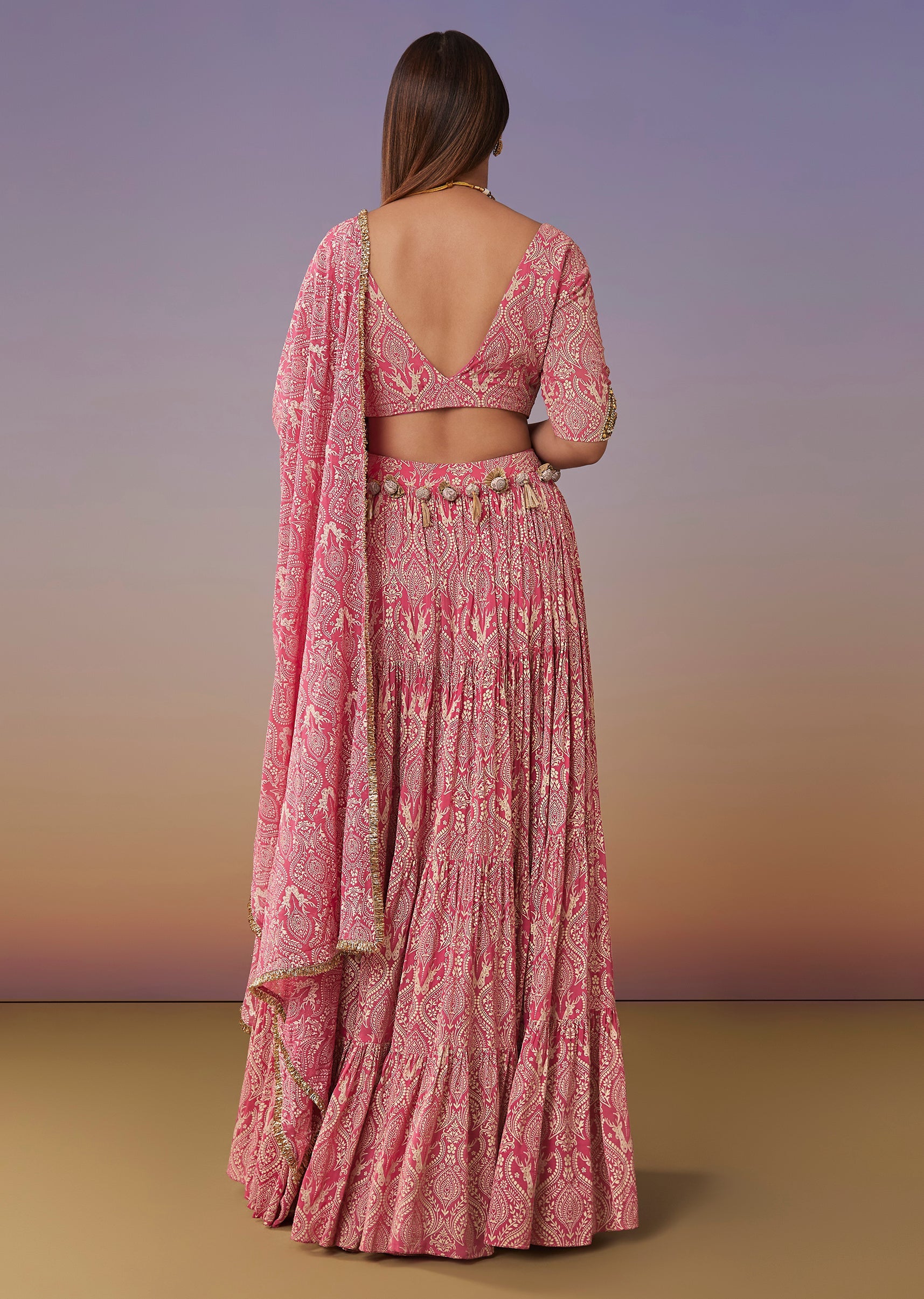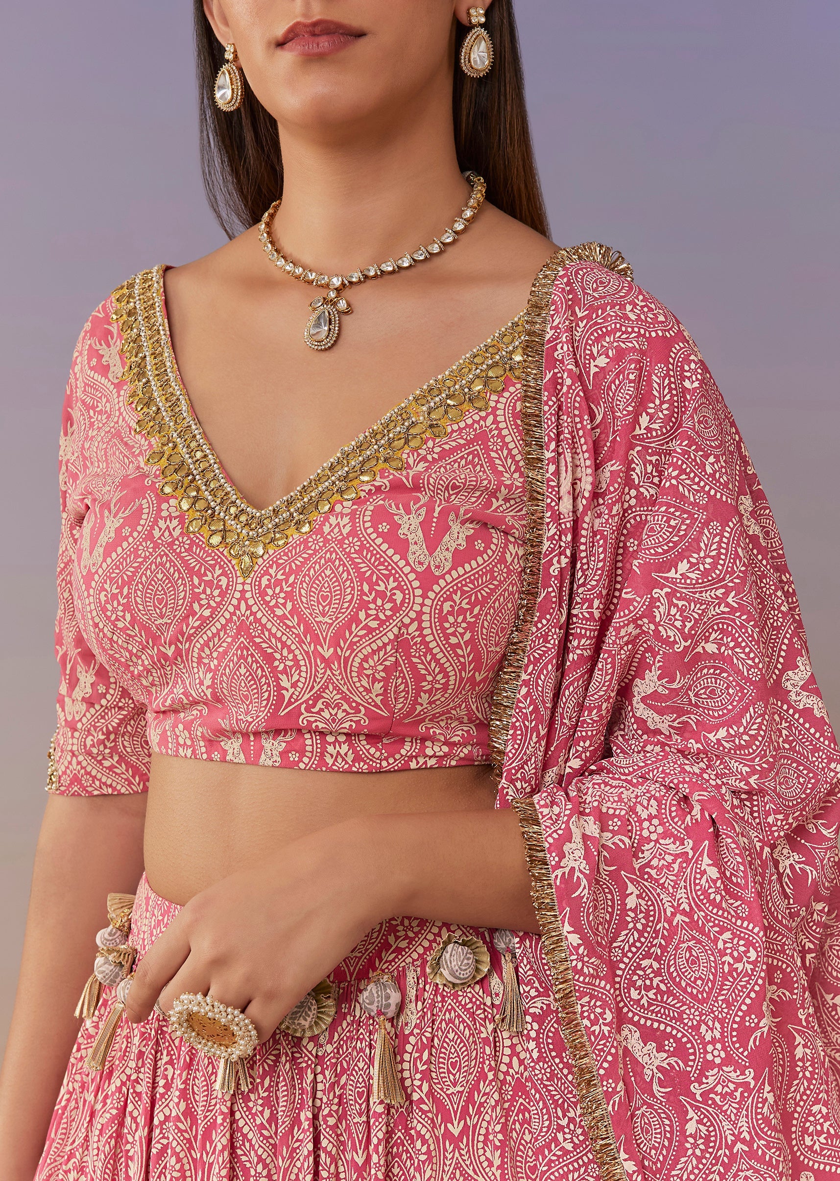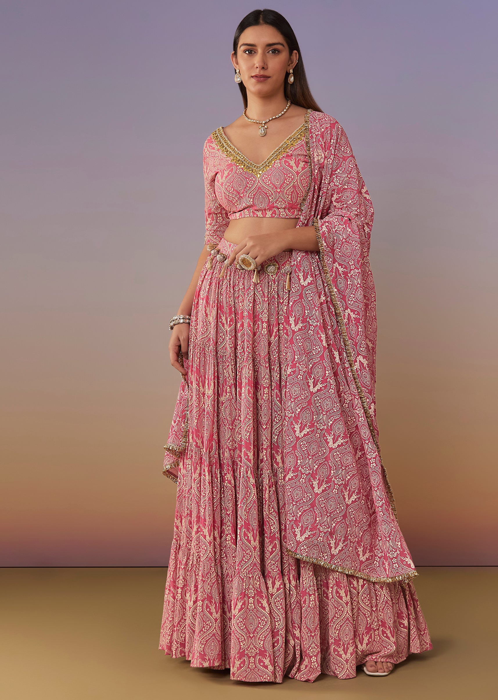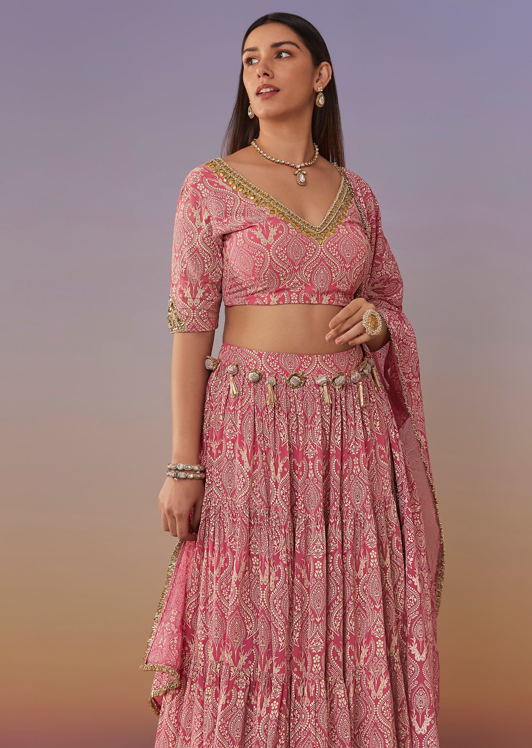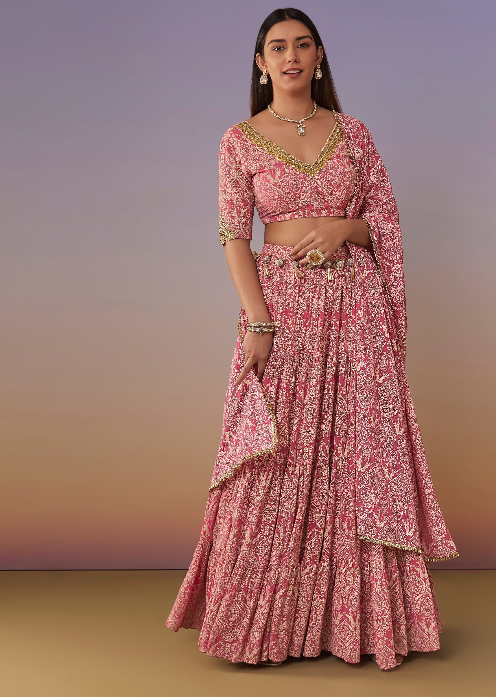 Pink Indie Printed Lehenga Set With Gotta Work Detailing