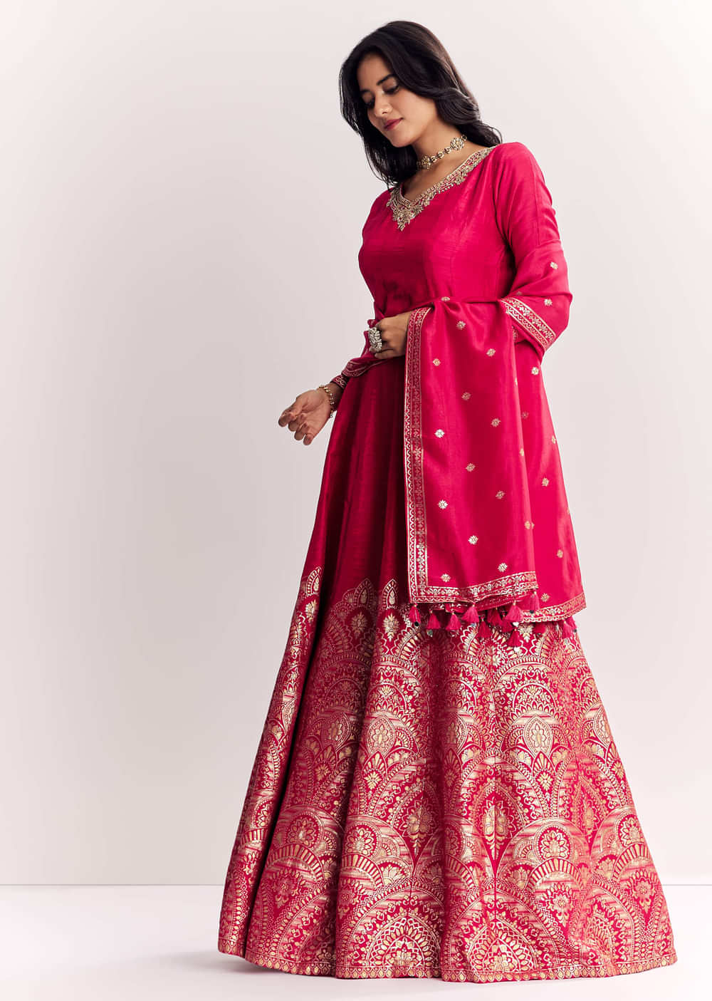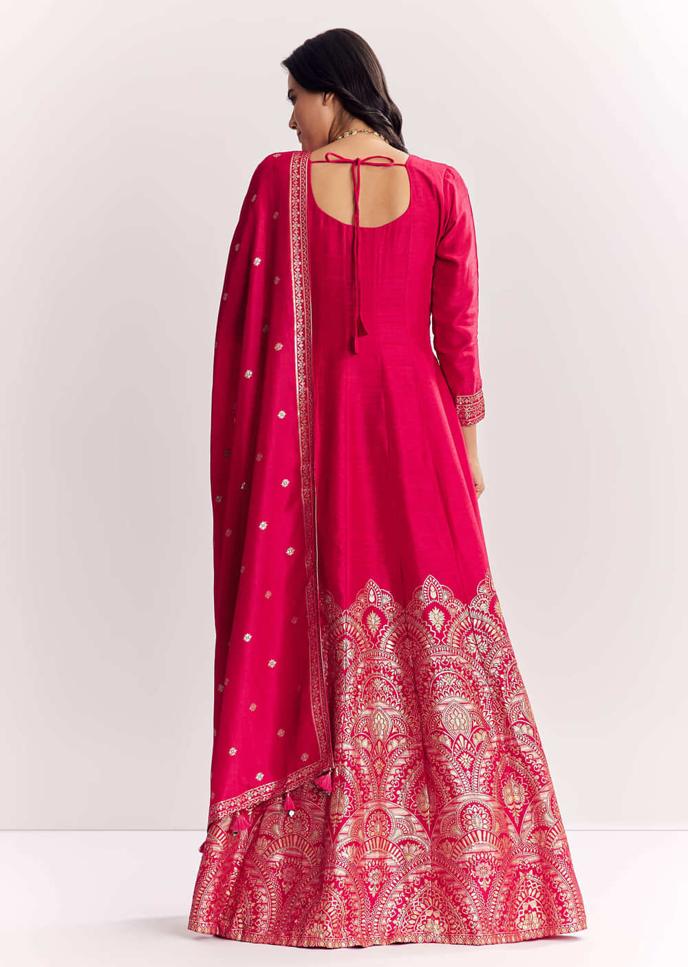 Pink Jacquard Silk Anarkali Suit With Dupatta