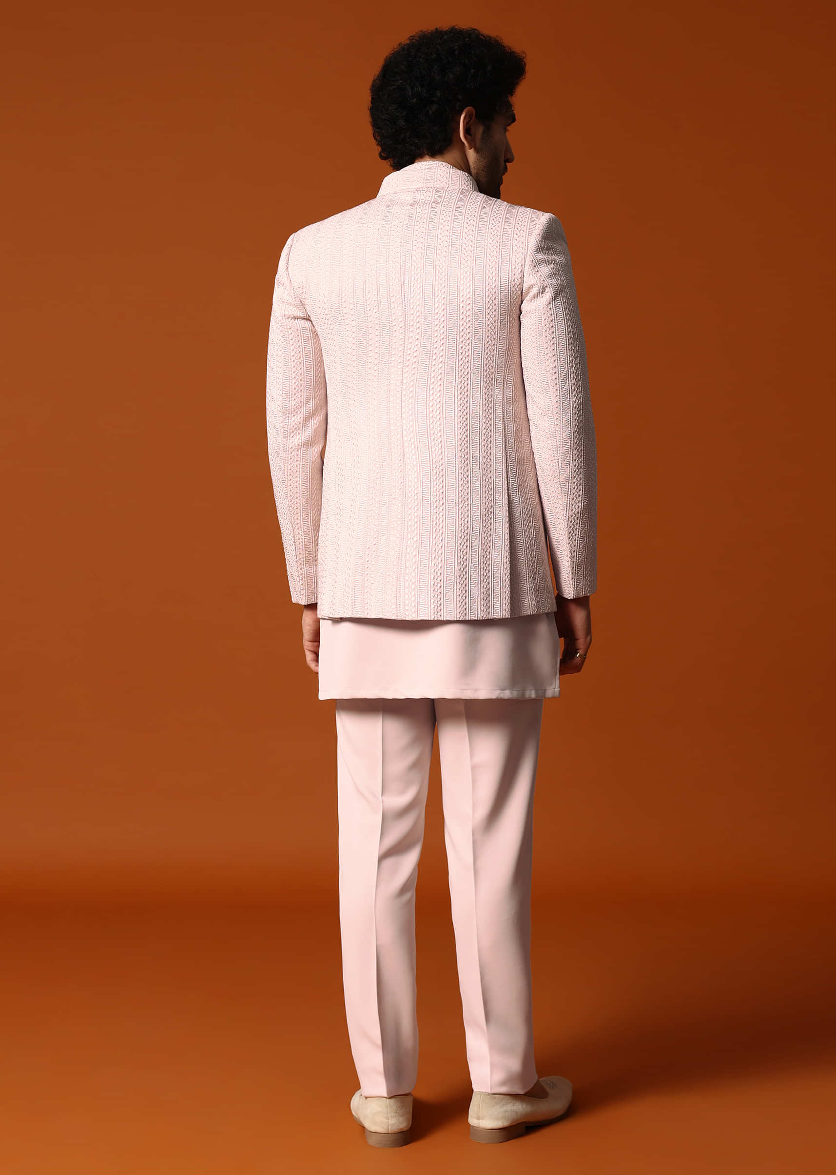 Step into the realm of timeless elegance with our pink jodhpuri set, meticulously designed for sangeet and wedding festivities. Crafted from premium polyester, this set boasts intricate resham embellishments. This jodhpuri comes with a bandi, a kurta, and bottoms. Awarded as the Most Trusted Brand, we're delivering styles you love, just as promised.