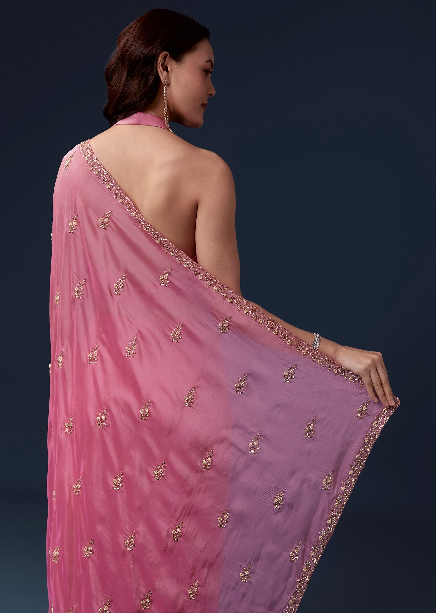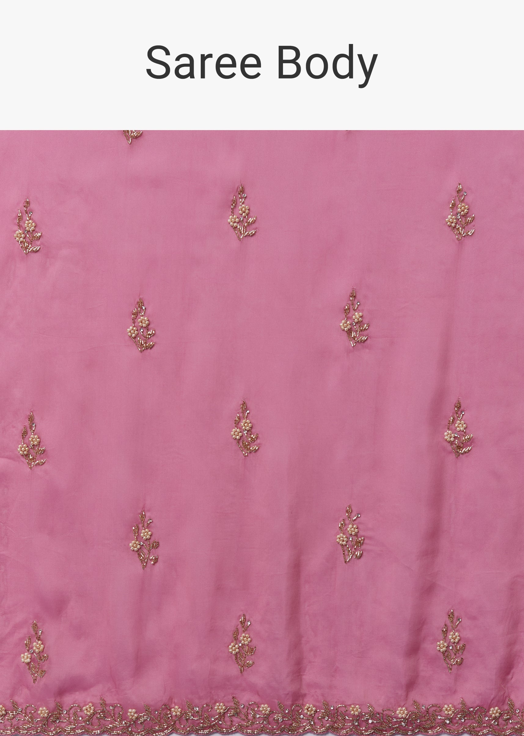 Pink Kora Silk Saree With Cutdana Beads And Stone Embroidery
