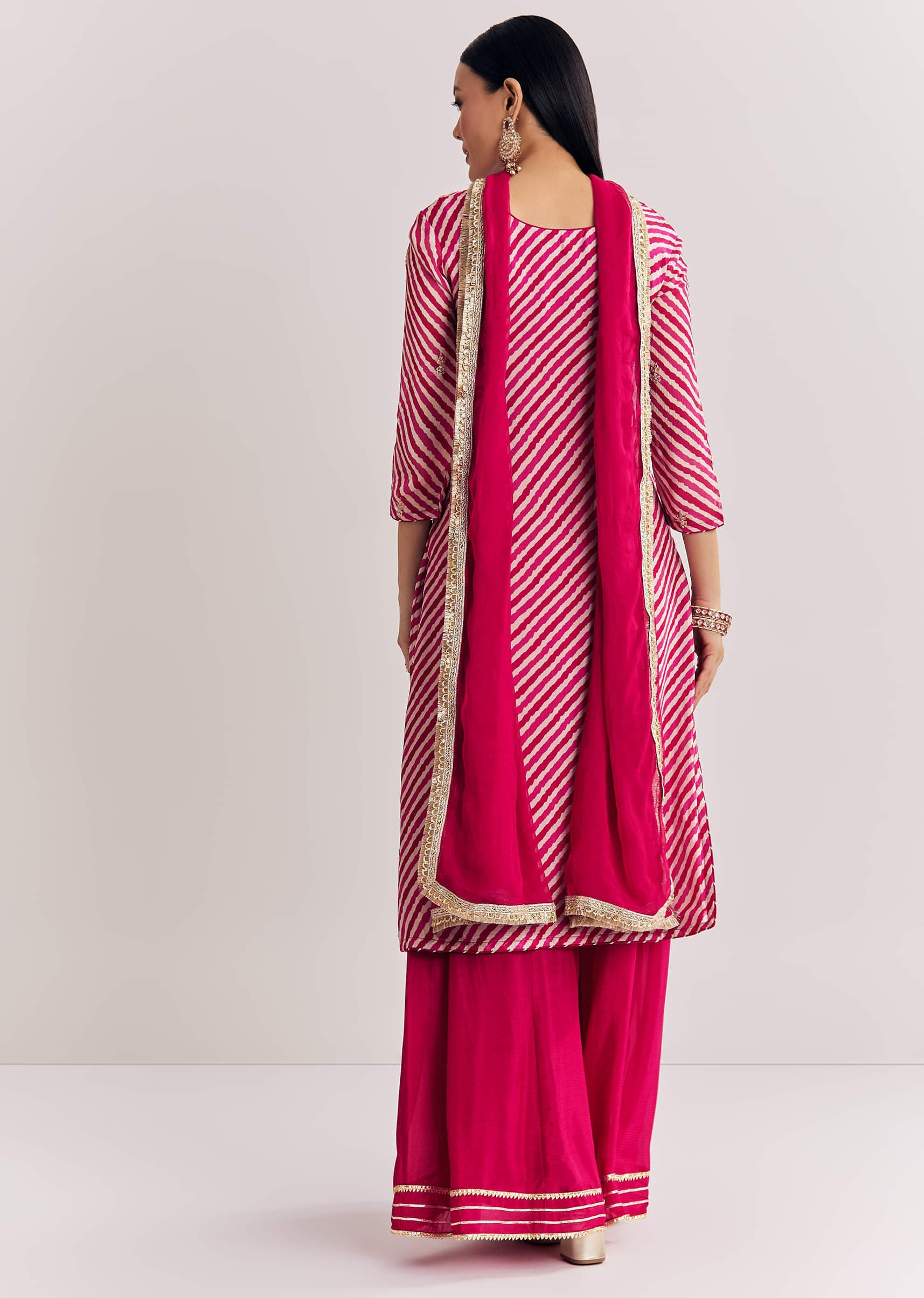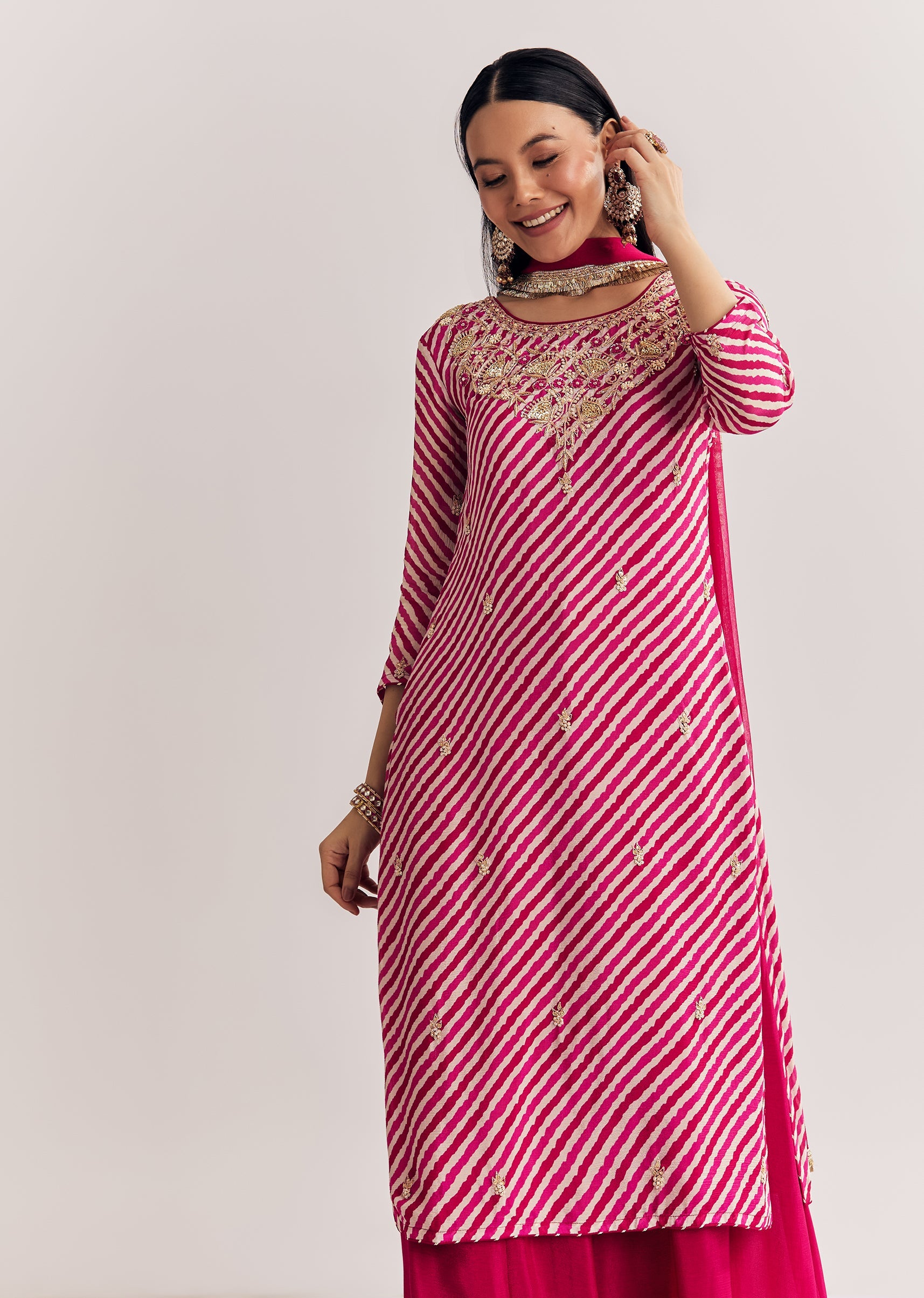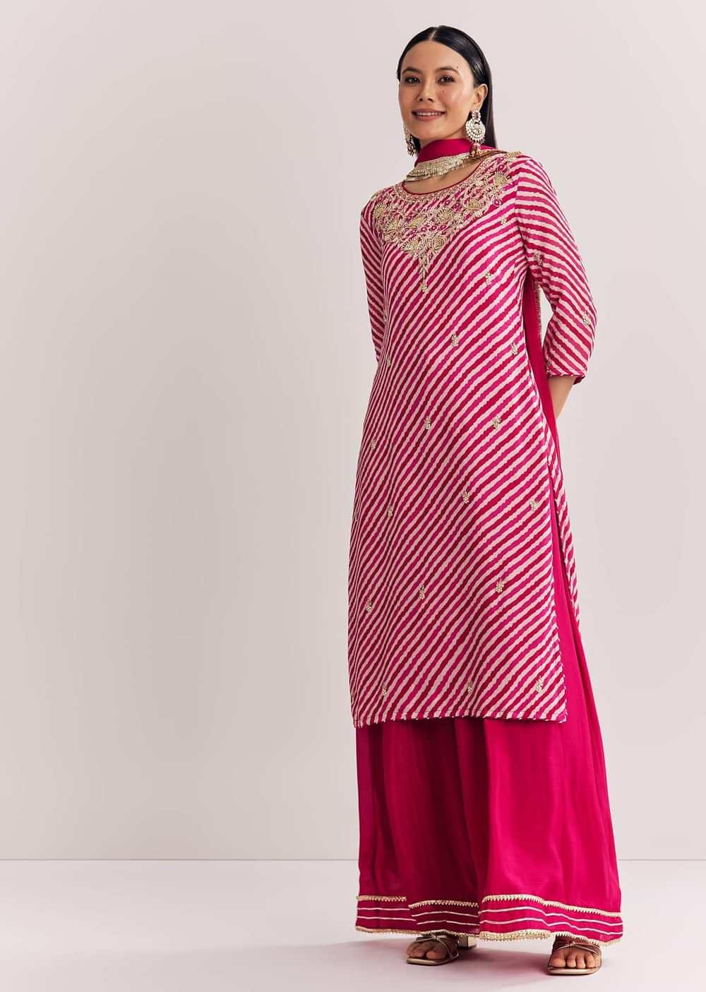 Pink Leheriya Zardosi Work Kurta Palazzo Suit