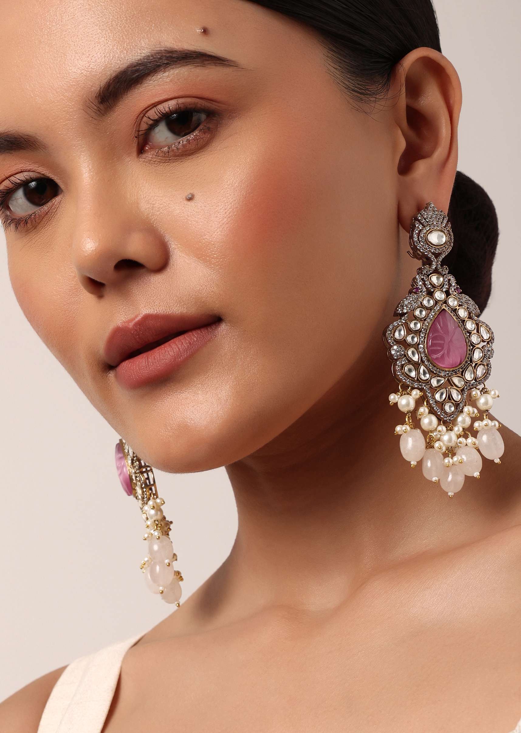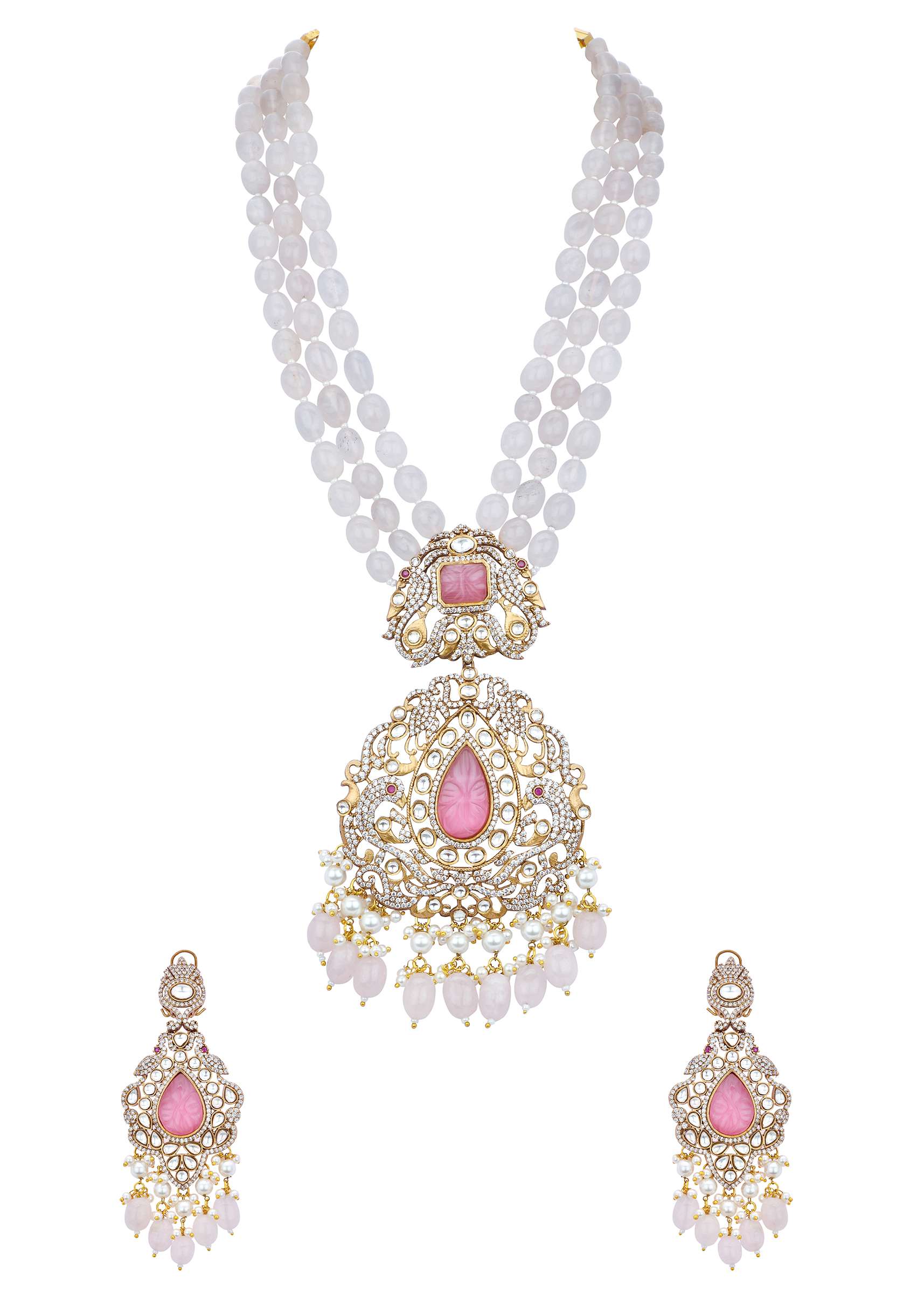 Pink Long Pendant Necklace Set With Mossanite Motif