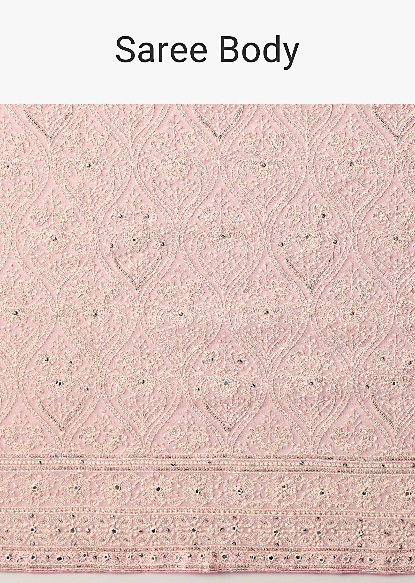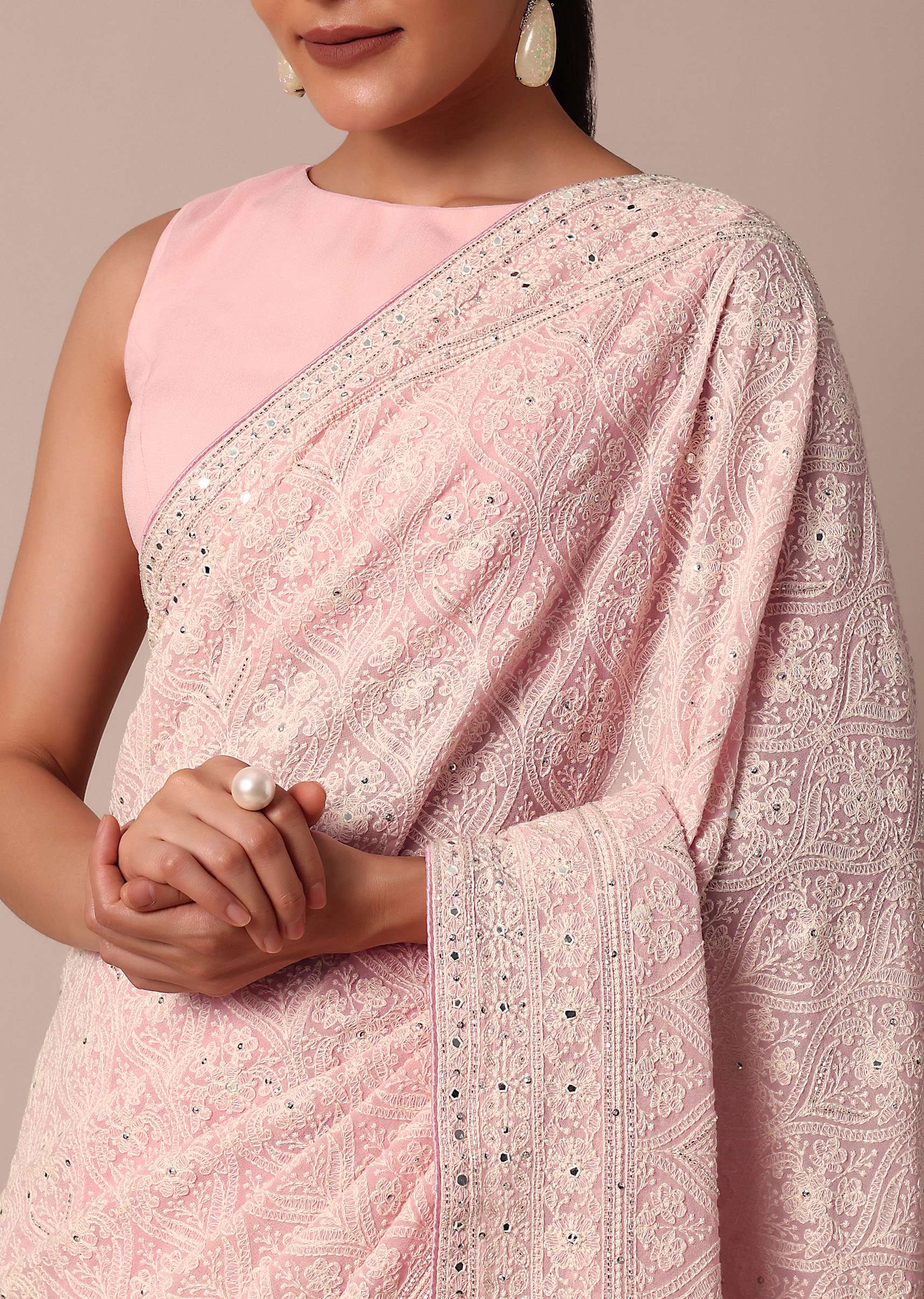 Pink Lucknowi Chikankari Saree With Sequin Embellishments
