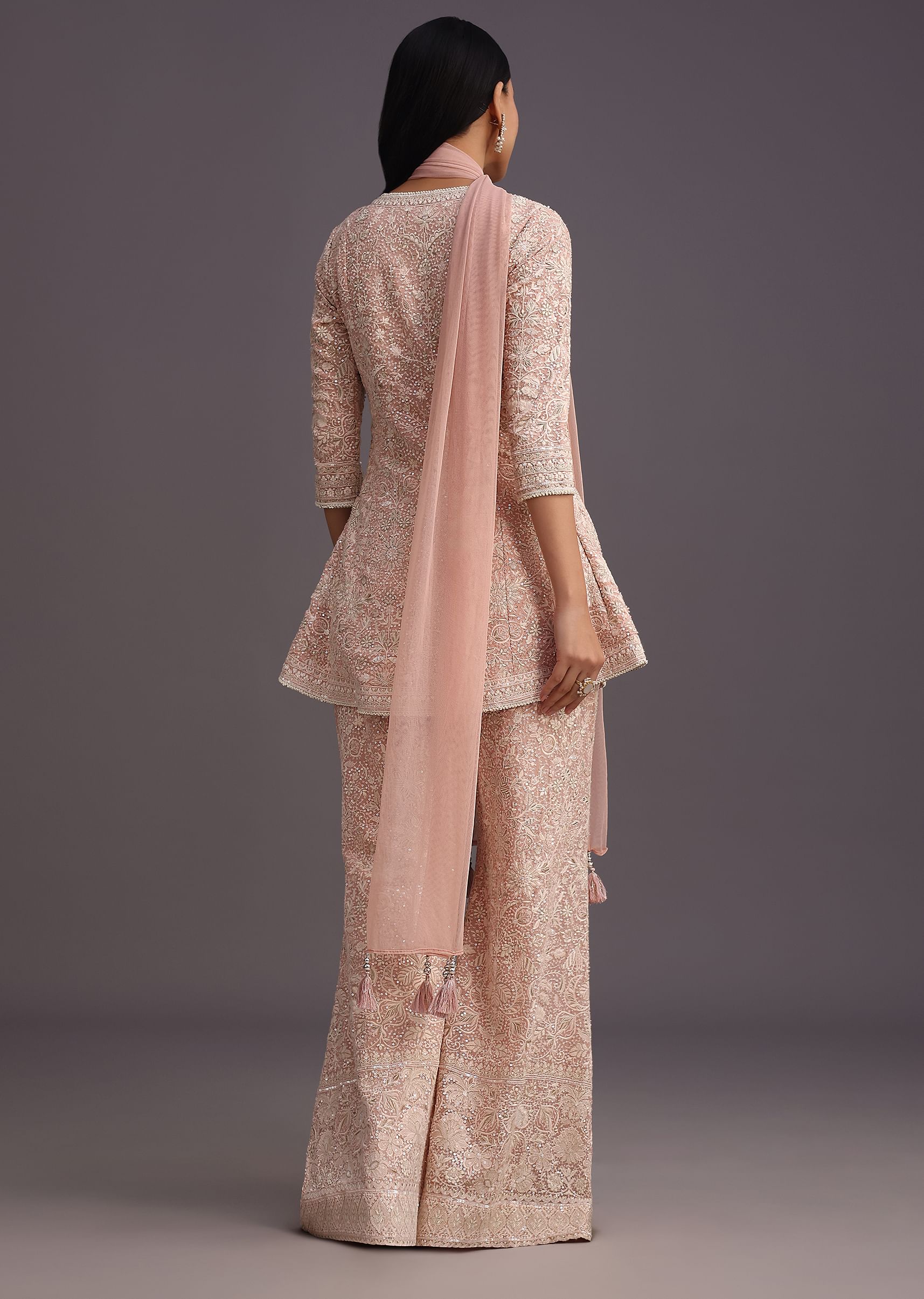 Pink Lucknowi Kurti Palazzo With Net Dupatta