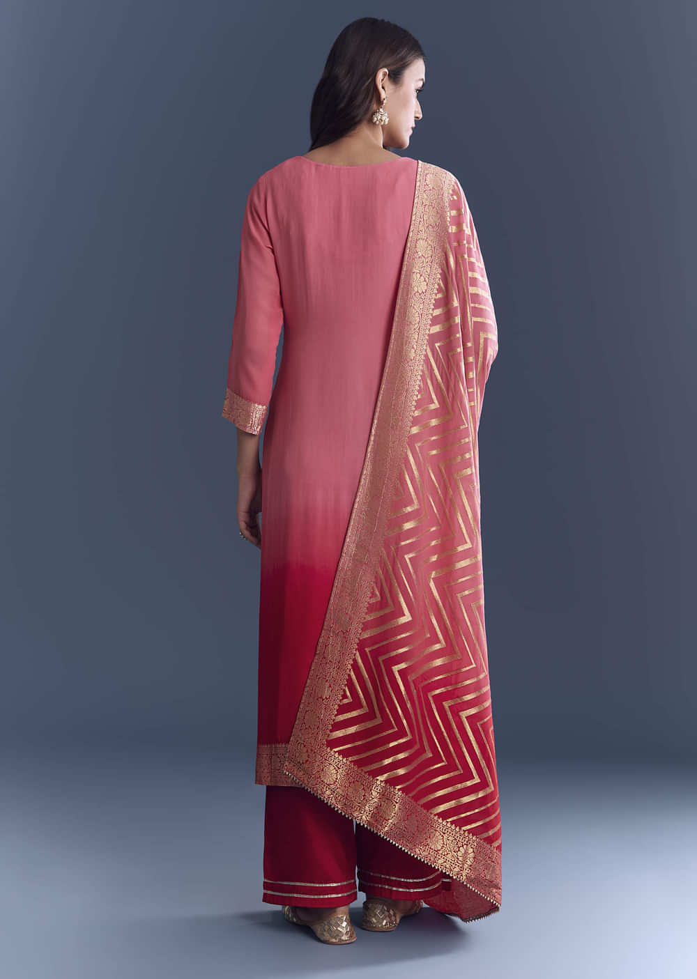 Pink Ombre Georgette Kurta Set With Banarasi Weave