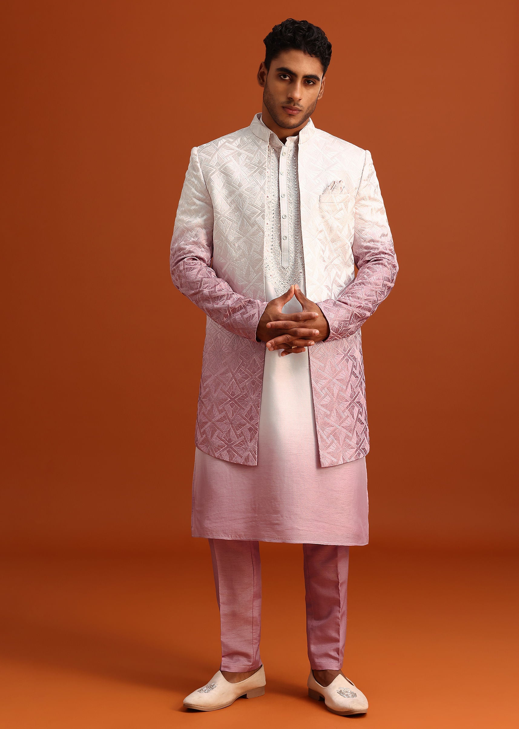 Pink Ombre Sherwani And Kurta Set With Resham Work
