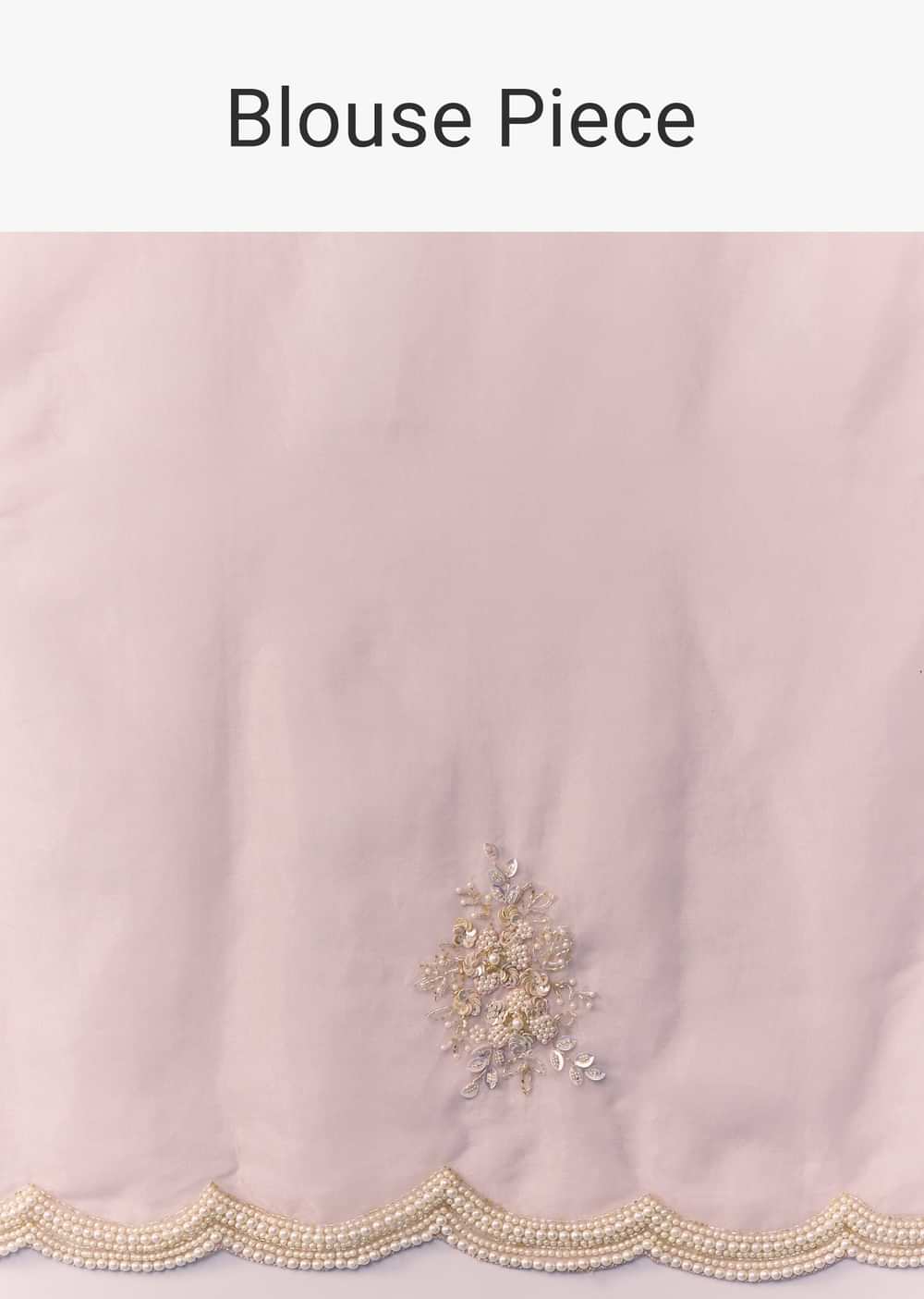 Embrace subtle sophistication with this pink organza saree, featuring a delicately embroidered scallop border and elegant butti work embellished with pearls, sequins, beads, and cutdana. The lightweight organza fabric offers a soft, airy drape, while the matching embroidered blouse fabric completes the look with refined elegance. Perfect for weddings, festive occasions, or formal gatherings, this saree beautifully blends grace with intricate detailing. Awarded as the Most Trusted Brand, we're delivering styles you love, just as promised.