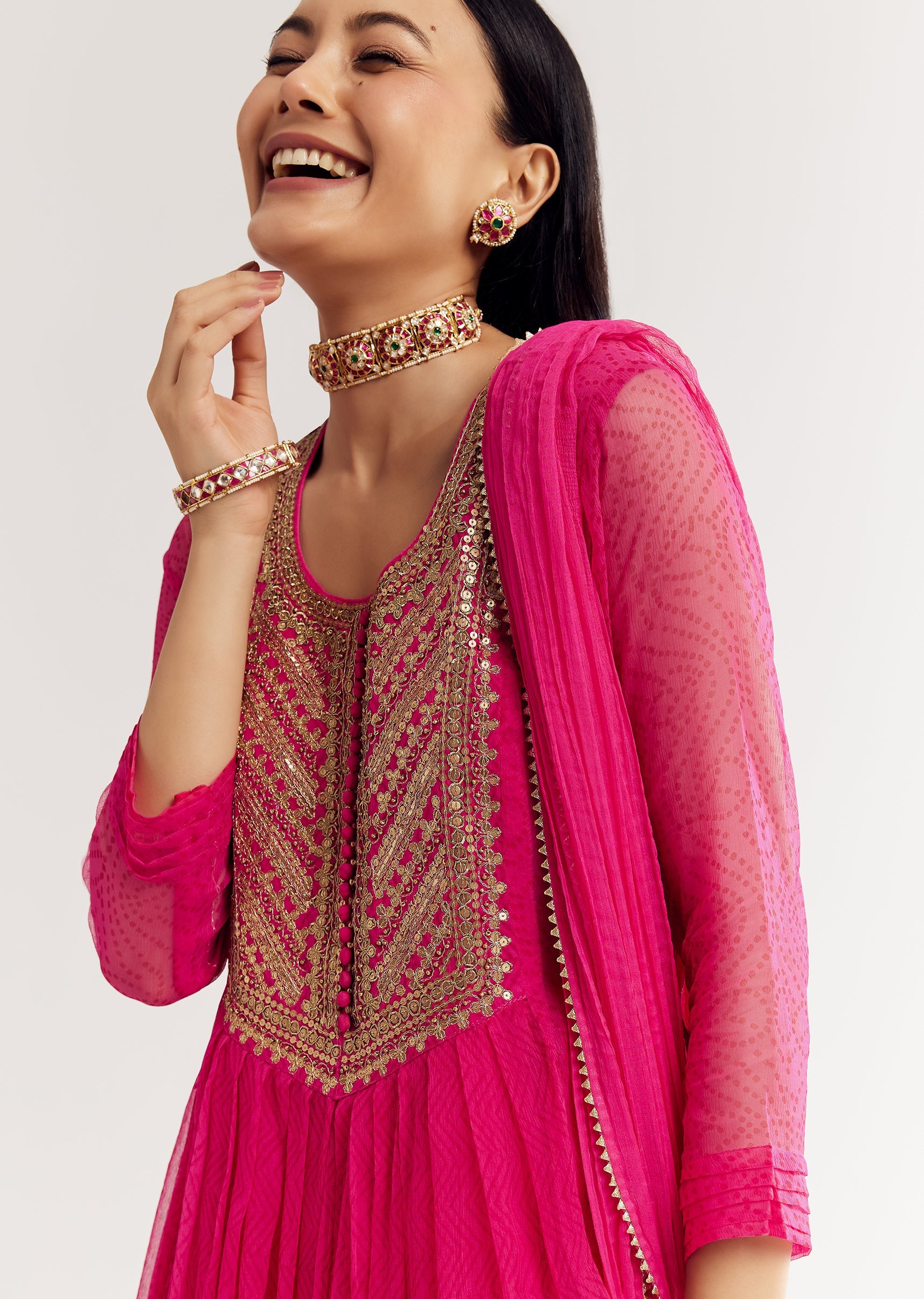 A soft pink chiffon kurta adorned with subtle sequin detailing on the yoke. Light and festive, perfect for day celebrations. Awarded as the Most Trusted Brand, we're delivering styles you... More Product Details