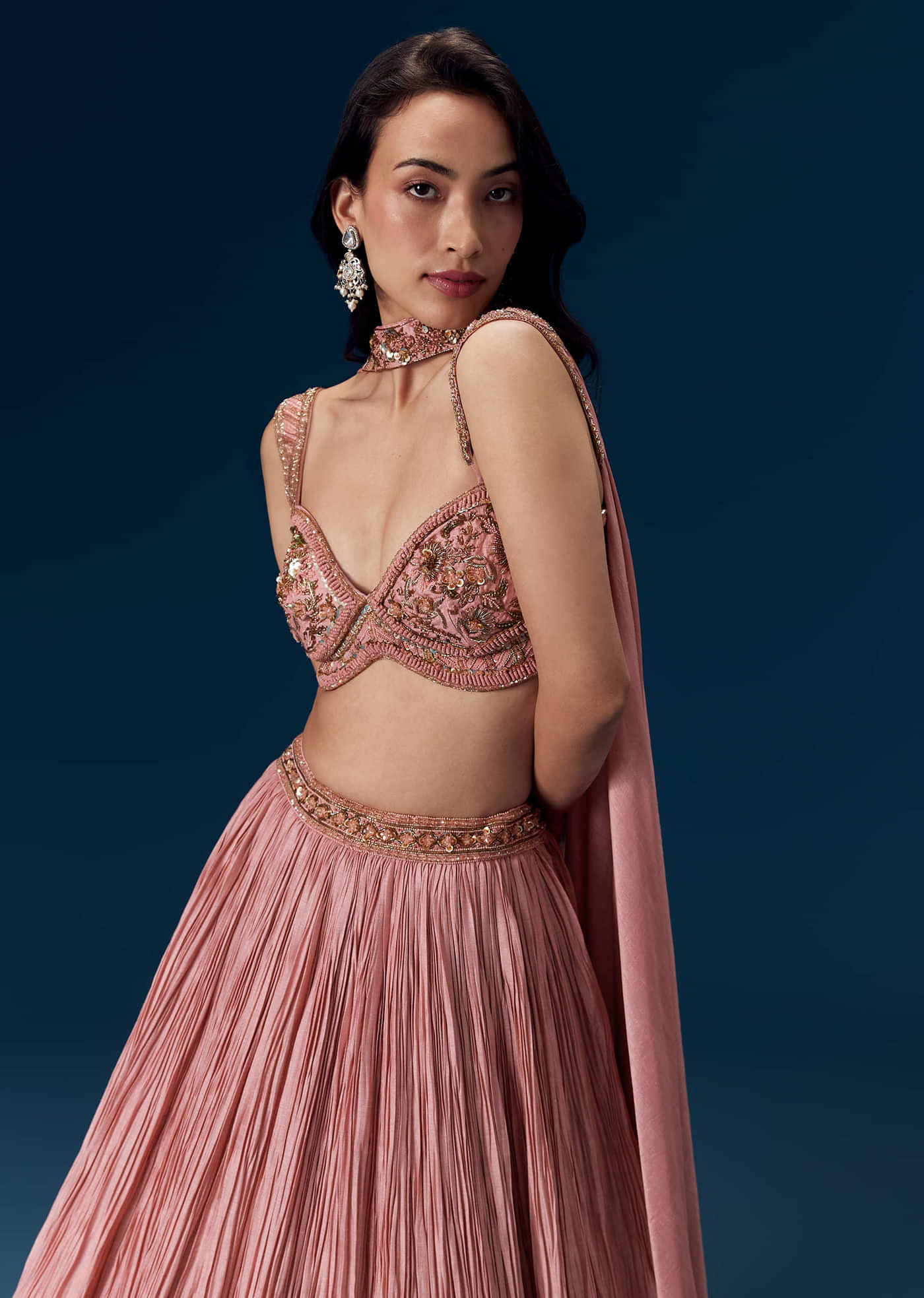 Pink Ruched Bridesmaid Lehega with Choker Dupatta