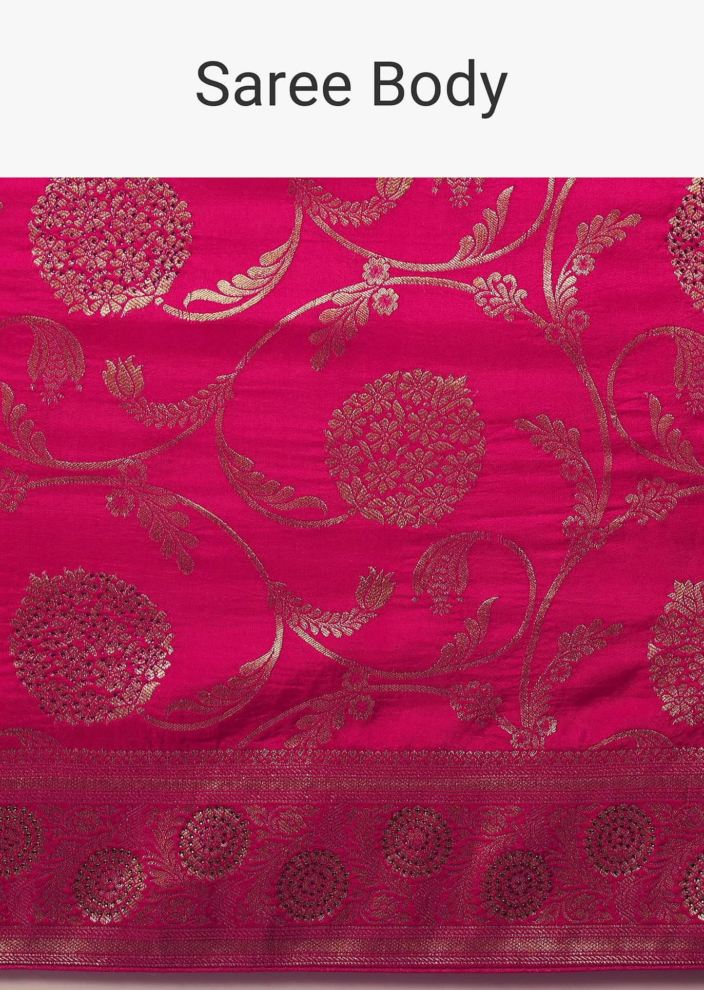 Pink Satin Organza Saree With Floral Jaal Weave