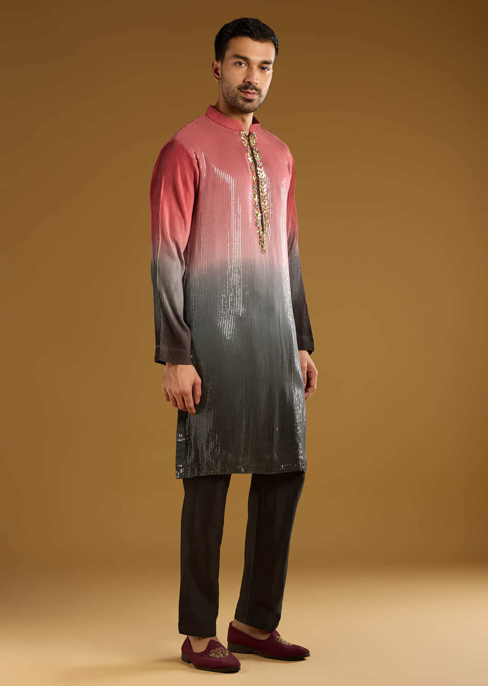 Party light finds every highlight on this pink men’s kurta set where sequins and embellished work add a playful sparkle across the front. The colour stays warm and flattering in... More Product Details