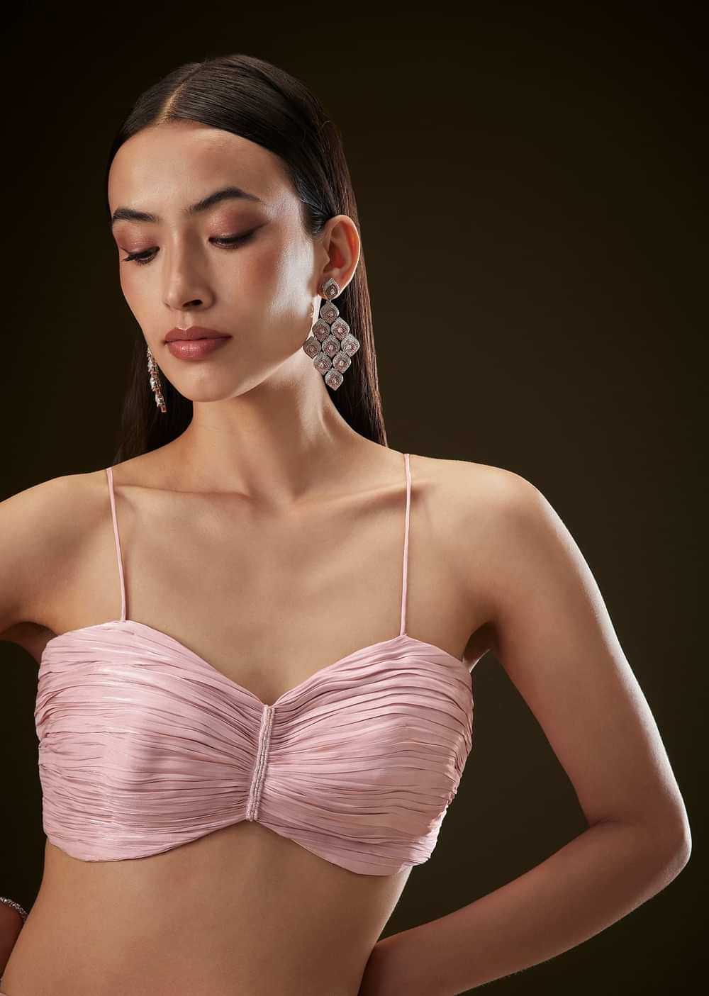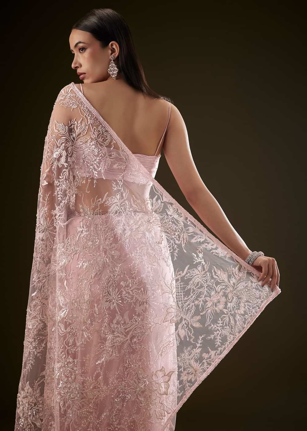 Pink Sequins Saree With Ruched Blouse