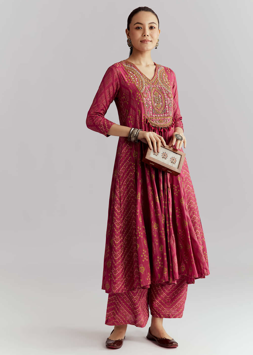 Pink Silk Anarkali Suit With Indie Print And Intricate Embroidery