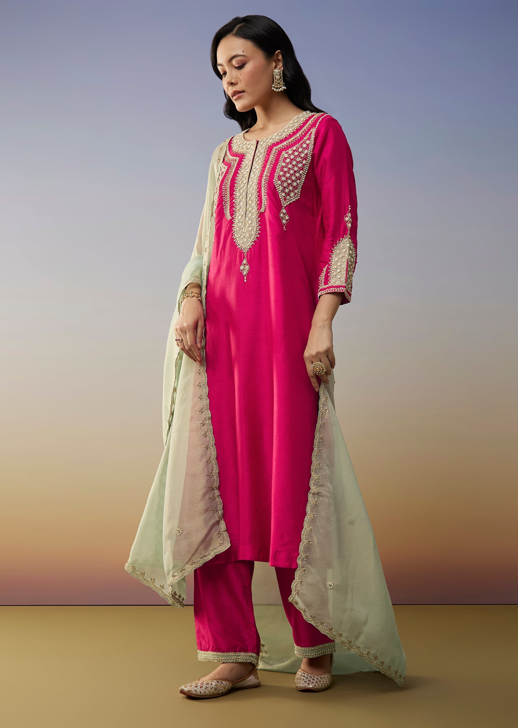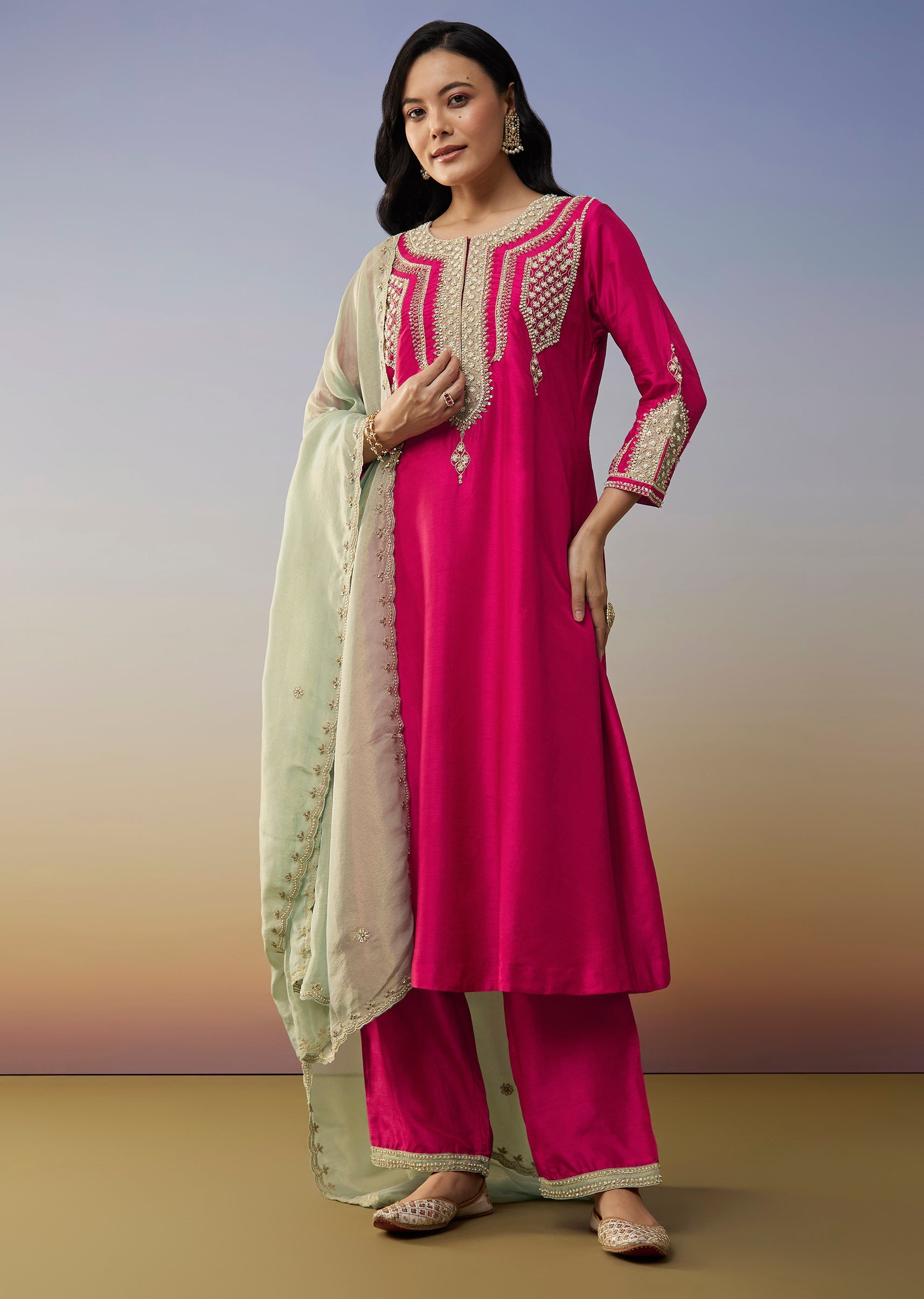 Pink Silk Anarkali Suits with Moti and Sequins Work