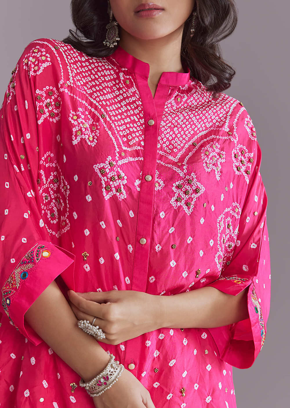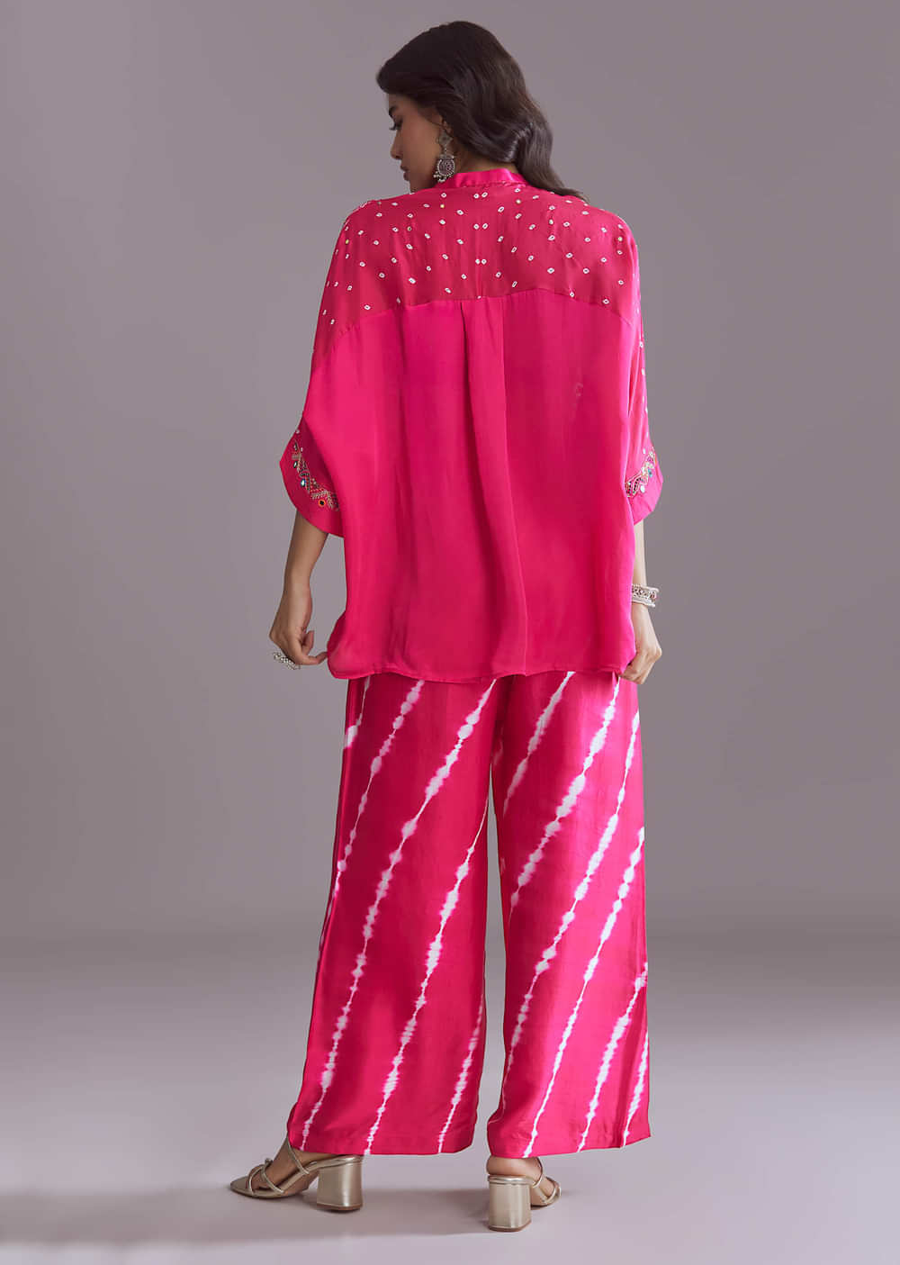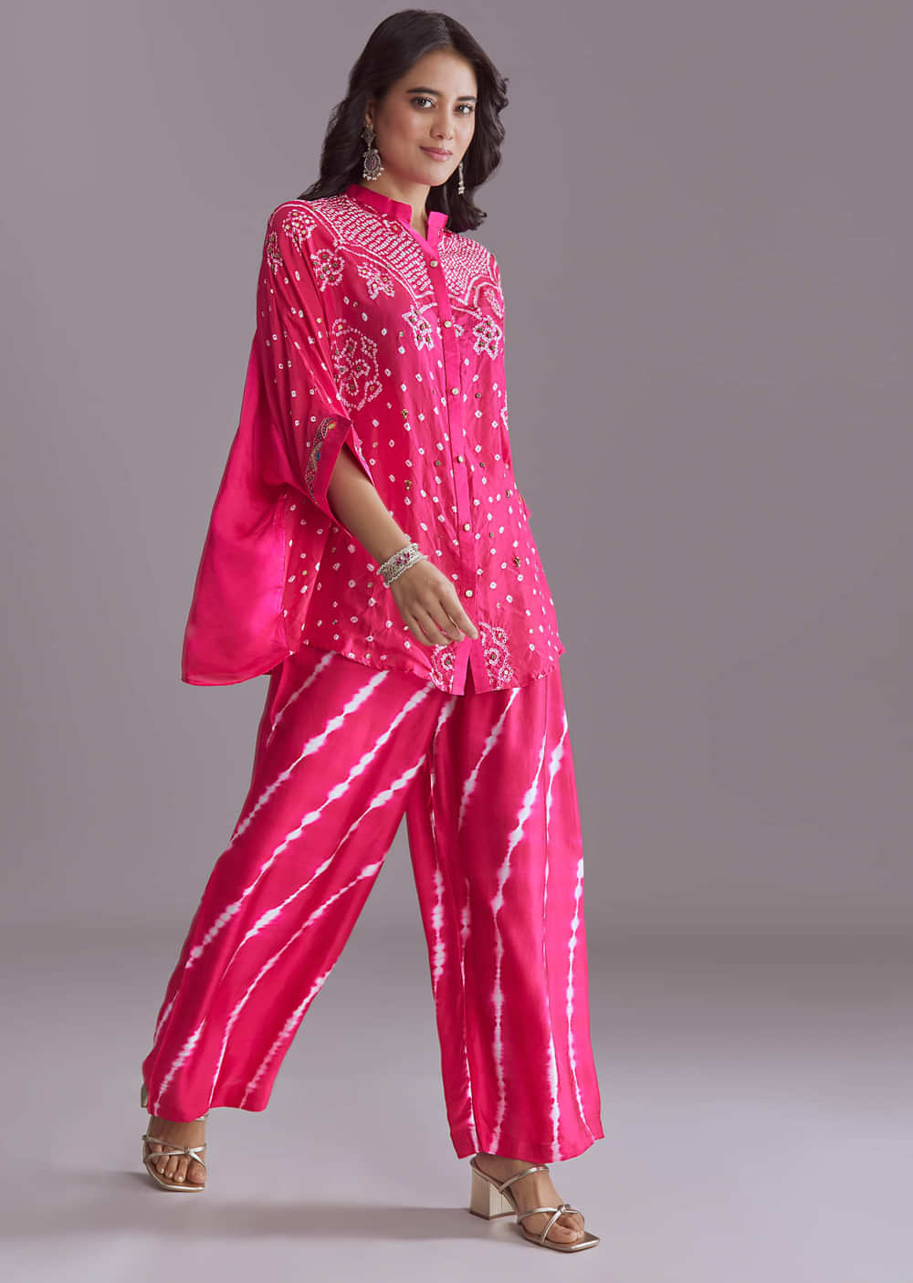 Pink Silk Co-Ord Set With Authentic Bandhani And Leheriya Print
