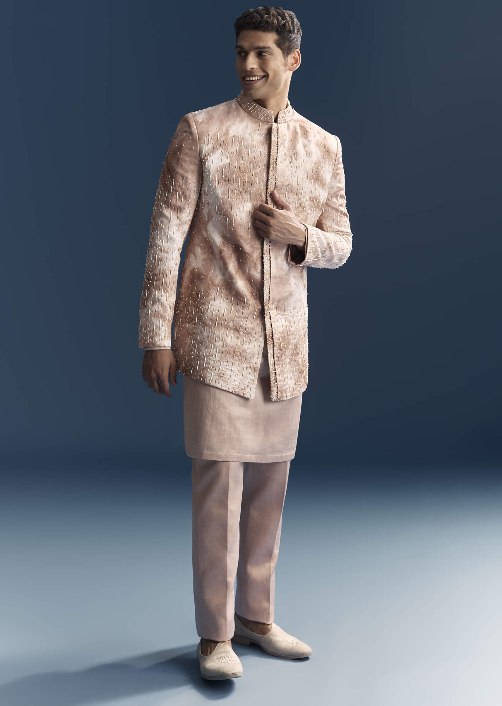 Pink Silk Indo Western Set For Men With Hand Embroidery