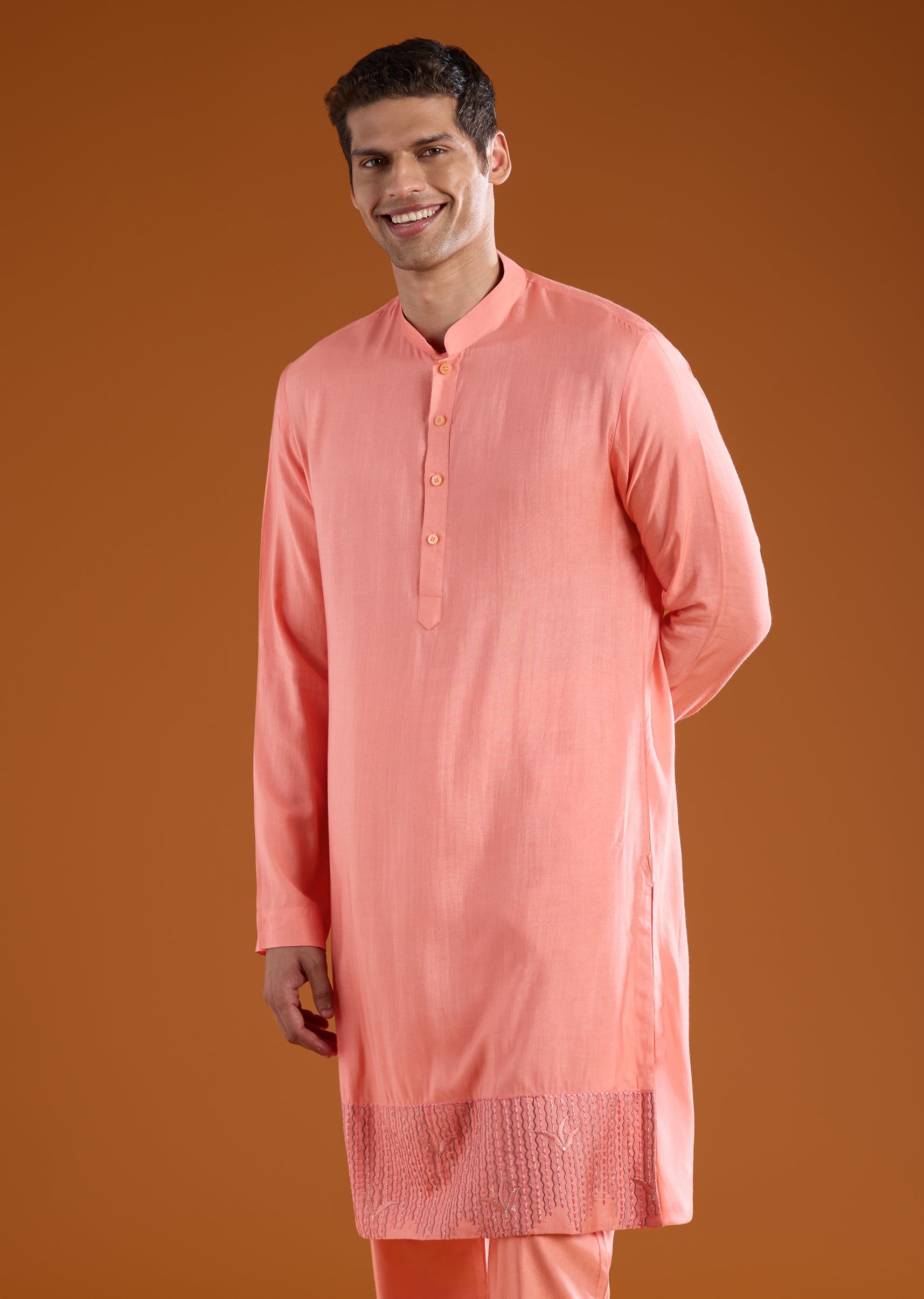 Fit Tips:The front button closure ensures a comfortable, tailored fit, while the kurta and pants offer ease of movement and all day comfort.