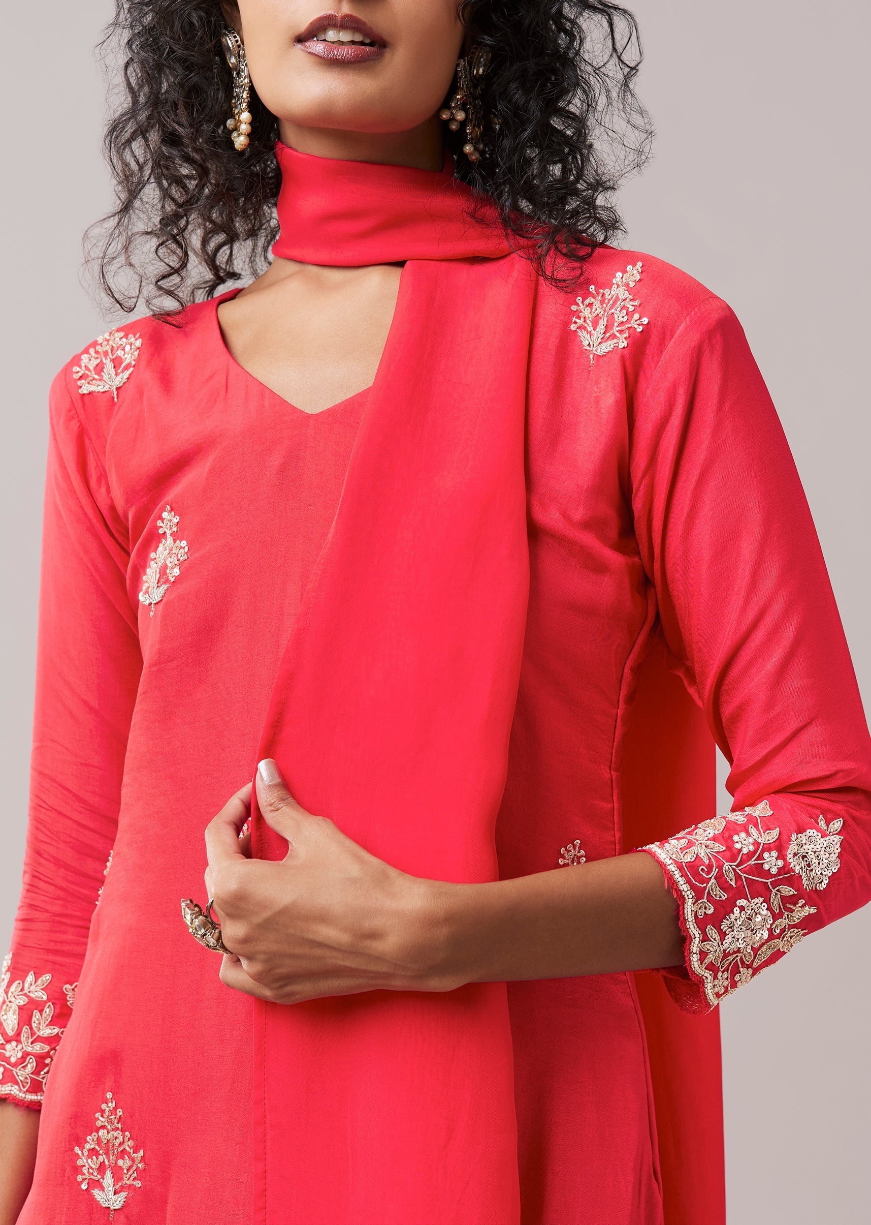 Designed with a subtle festive sparkle, this silk kurta set features elegant cut dana and sequin embroidery that adds refined shine to the silhouette. The kurta is styled with a... More Product Details