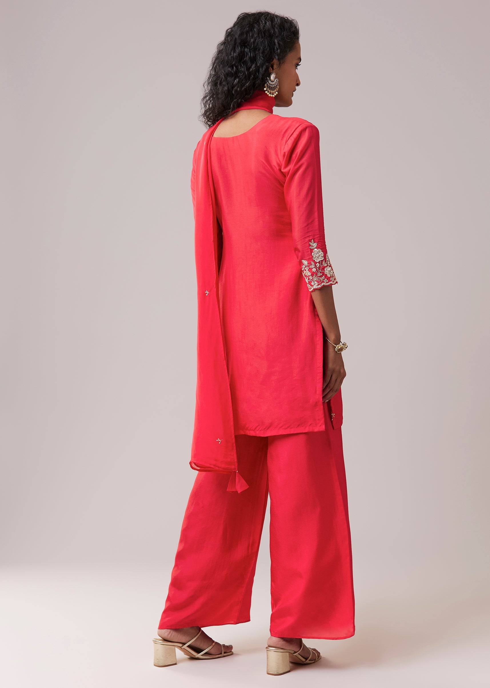 Pink Silk Kurta Palazzo Set with Sequin Work