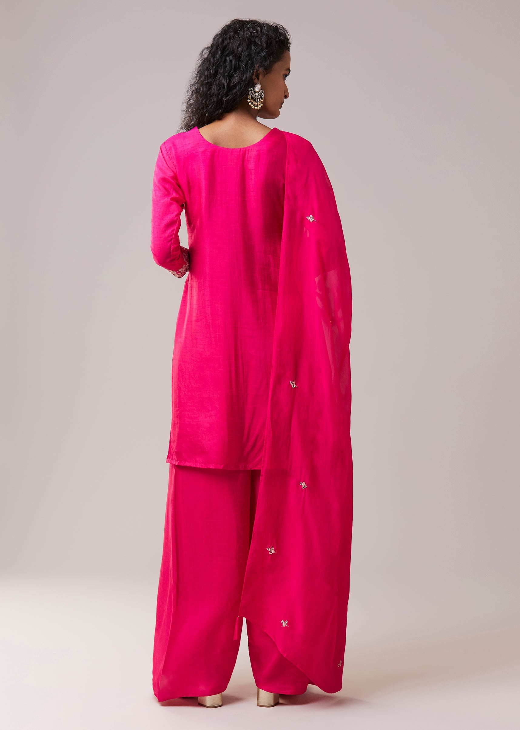 Rooted in festive tradition with a refined finish, this gotta and zardosi work kurta set is crafted for elegant celebrations. The silk kurta features intricate embroidery that adds richness without... More Product Details