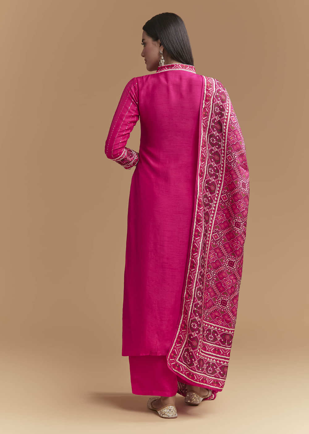 Pink Silk Kurta Set With Sequins Work And Patola Print Dupatta