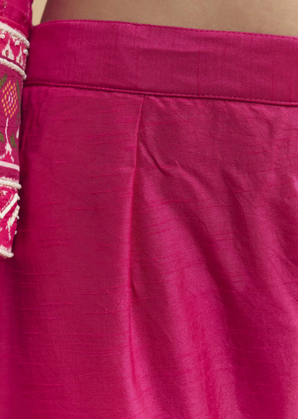Crafted for colour lovers, this pink silk kurta set balances a glowing surface with a statement patola dupatta. Sequins and cutdana on the kurta add controlled sparkle that reads refined... More Product Details