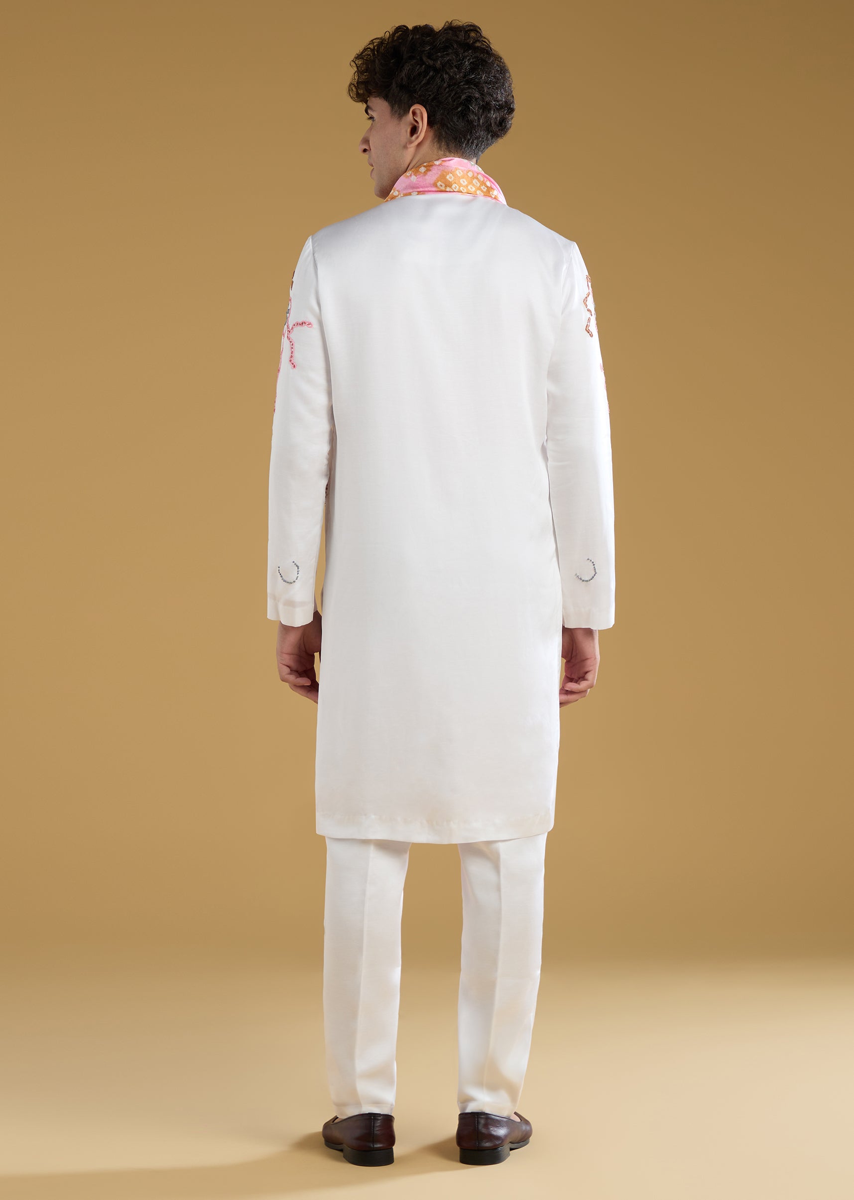 Soft, refreshing, and celebration ready, this pastel pink kurta set is perfect for haldi and mehendi functions for a groomsman or the groom’s brother. Crafted in smooth silk, it features... More Product Details