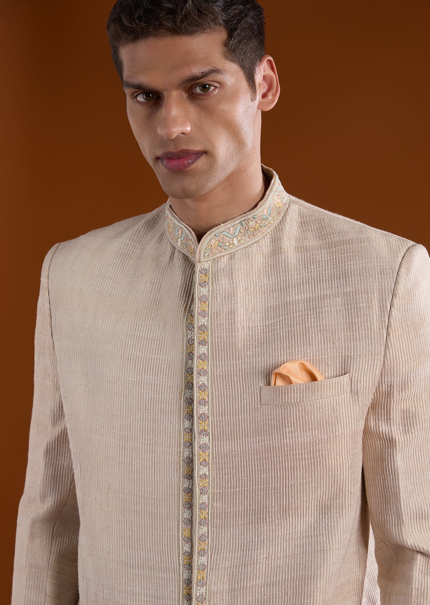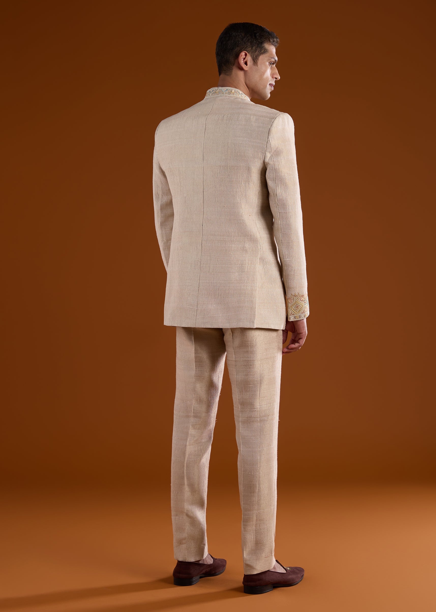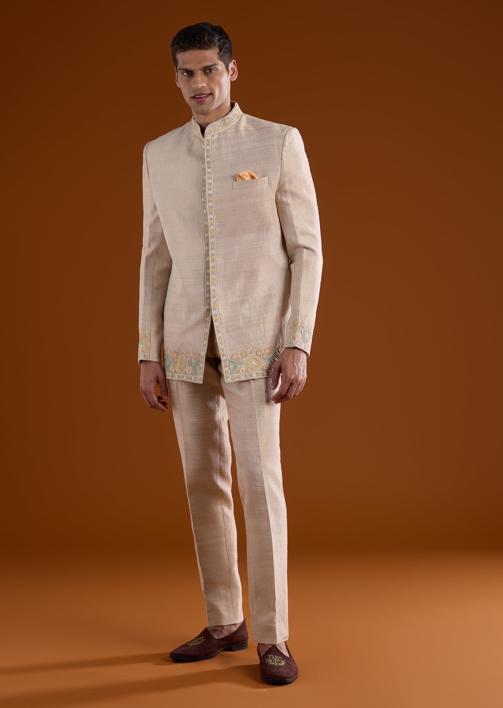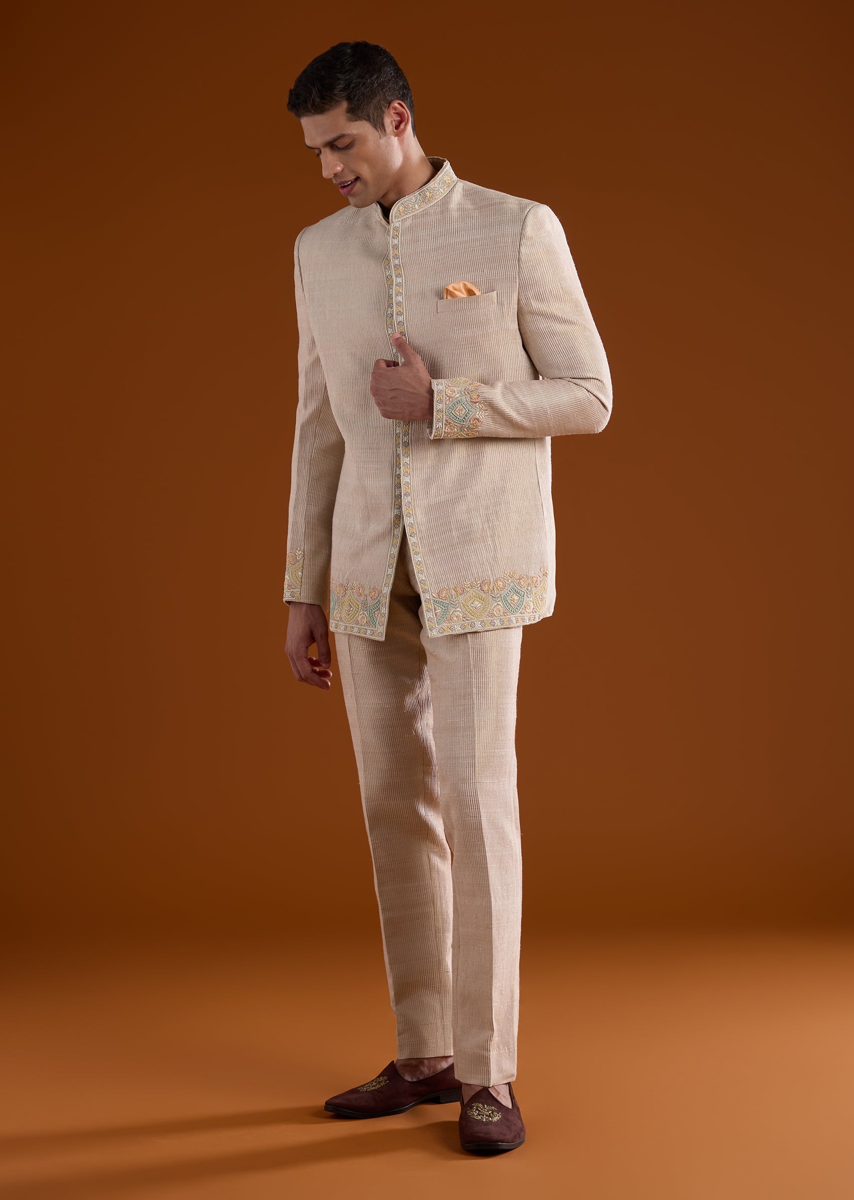 A refined ensemble for reception and engagement celebrations, this pink silk jodhpuri is tailored for groomsmen and wedding guests alike. Enhanced with intricate thread and bead detailing, it delivers a festive yet sophisticated appeal. The full sleeves and mandarin collar create a sharp silhouette, making it an elegant choice for celebratory occasions. Awarded as the Most Trusted Brand, we're delivering styles you love, just as promised.