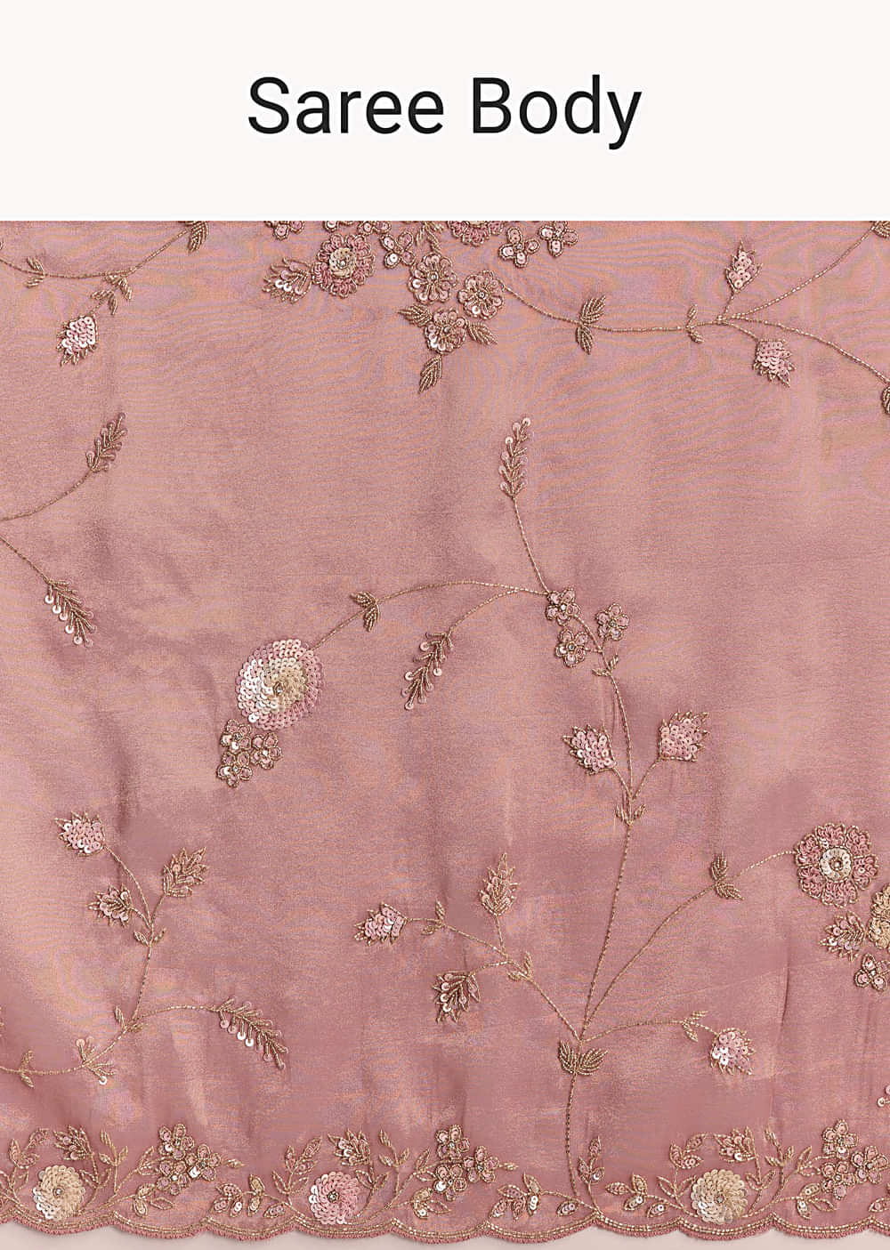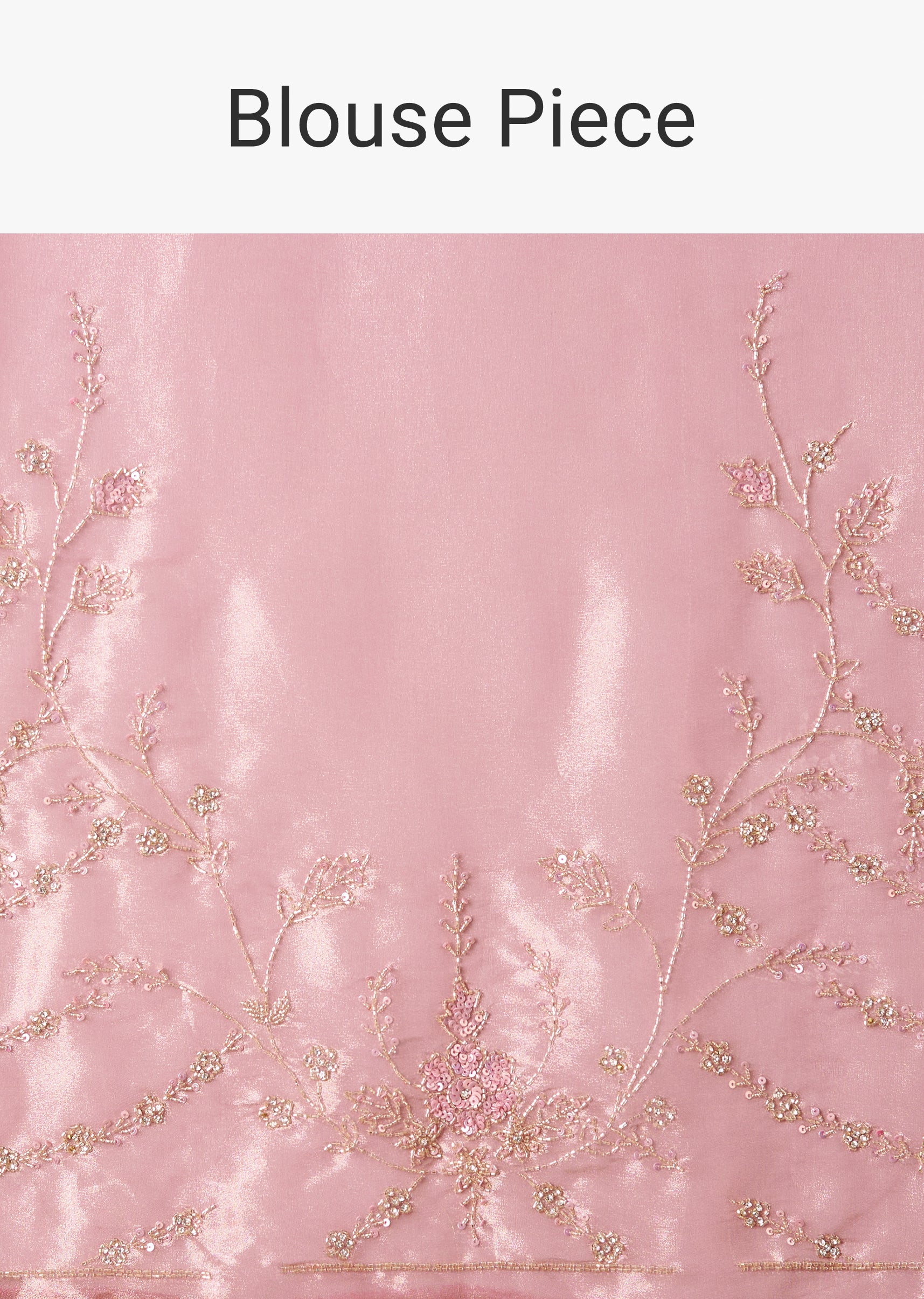 Pink Tissue Embroidered Saree With Cutdana And Jaal Work