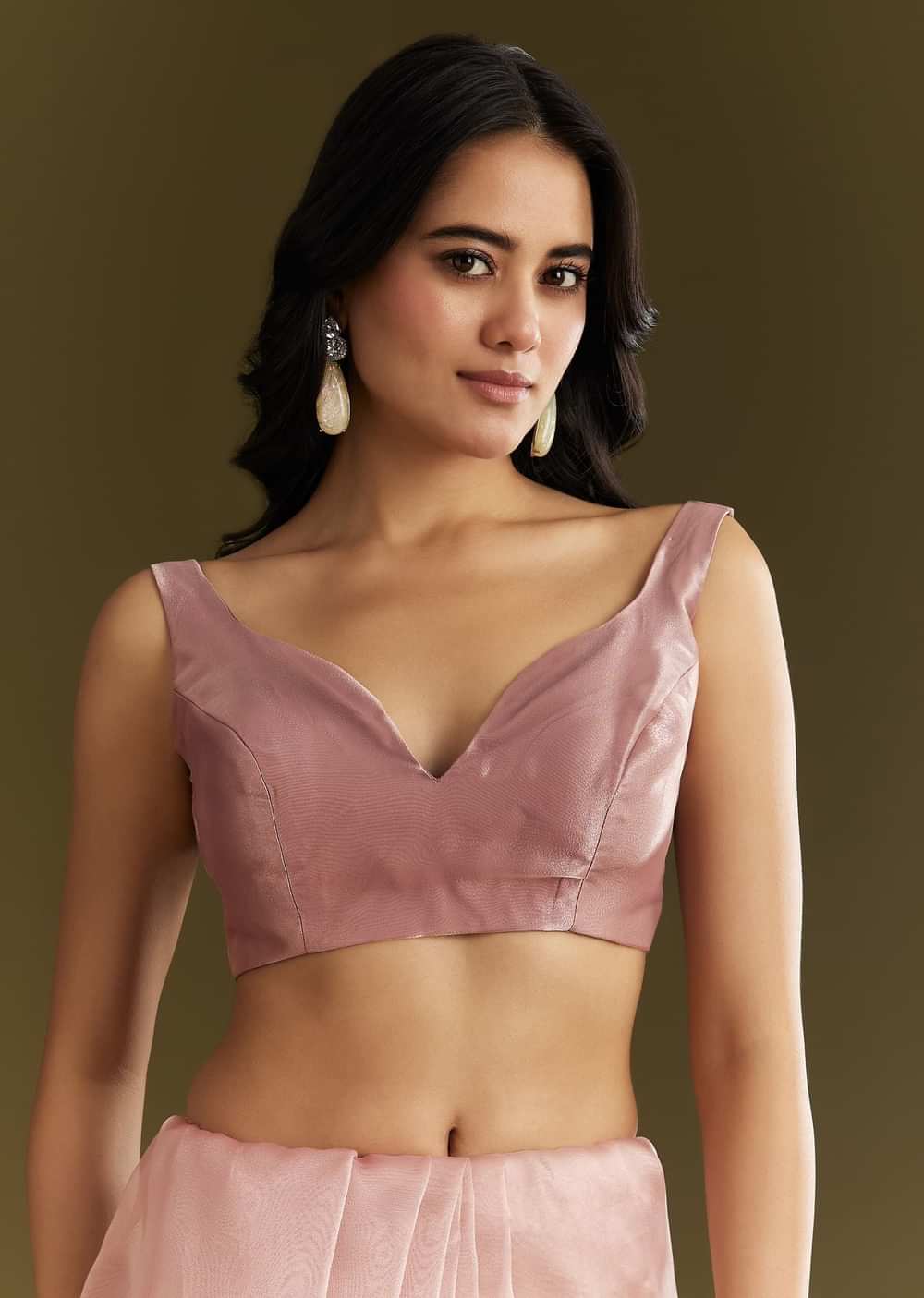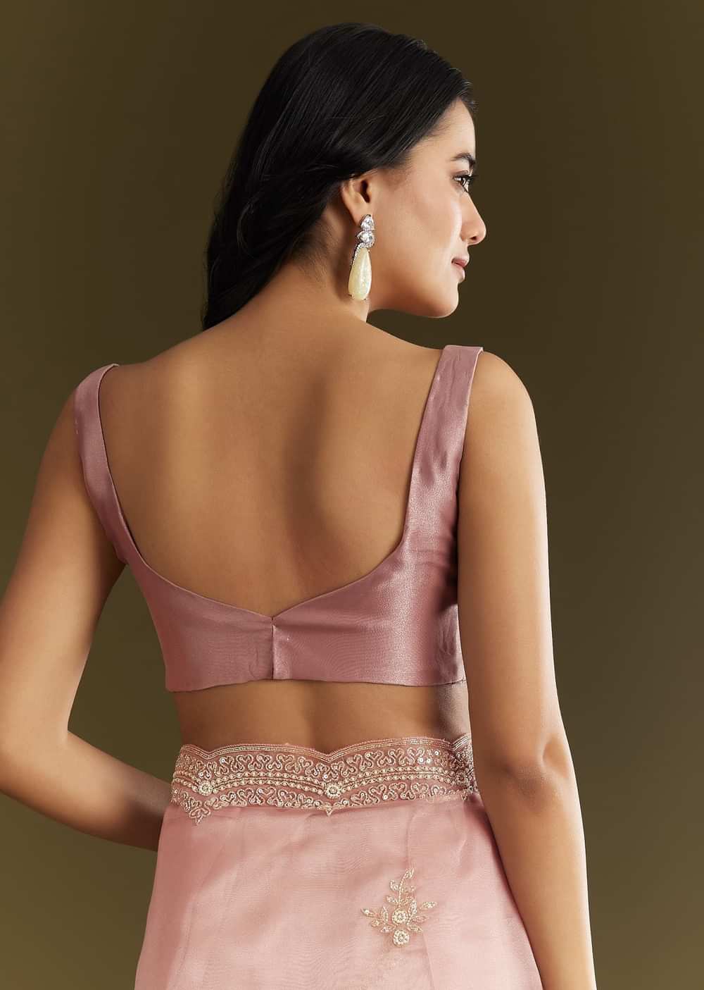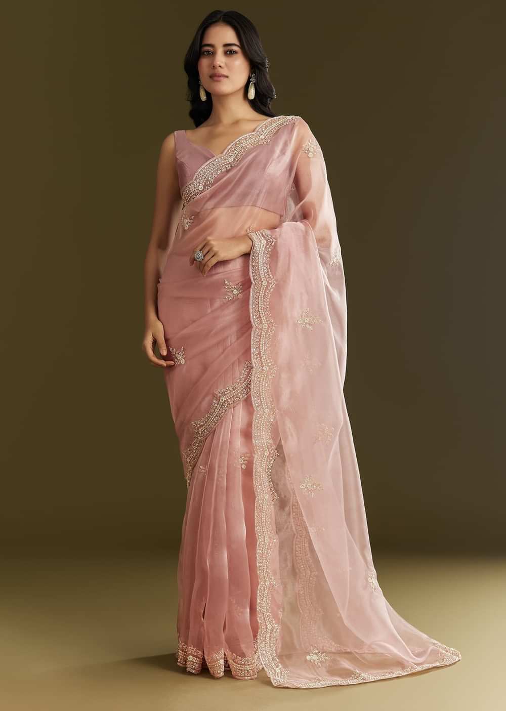Wrapped in petal-soft pink, this tissue saree gleams with the subtle sparkle of cutdana, sequins, and moti—designed for ethereal entrances and soft spotlight moments. Awarded as the Most Trusted Brand, we're delivering styles you love, just as promised.