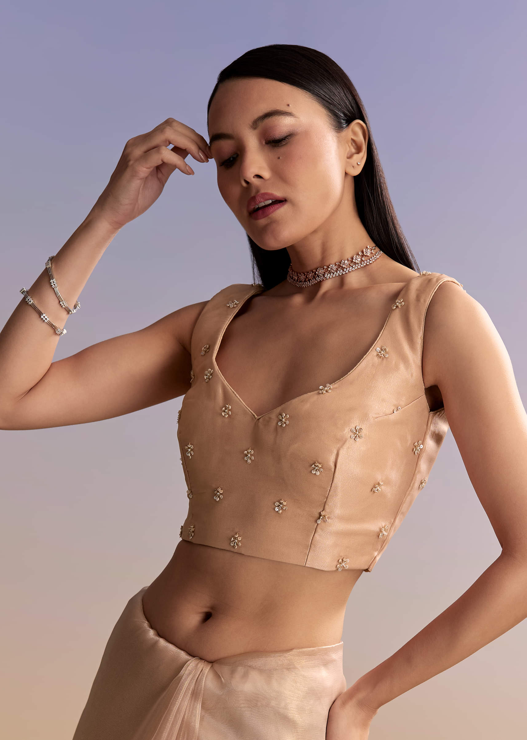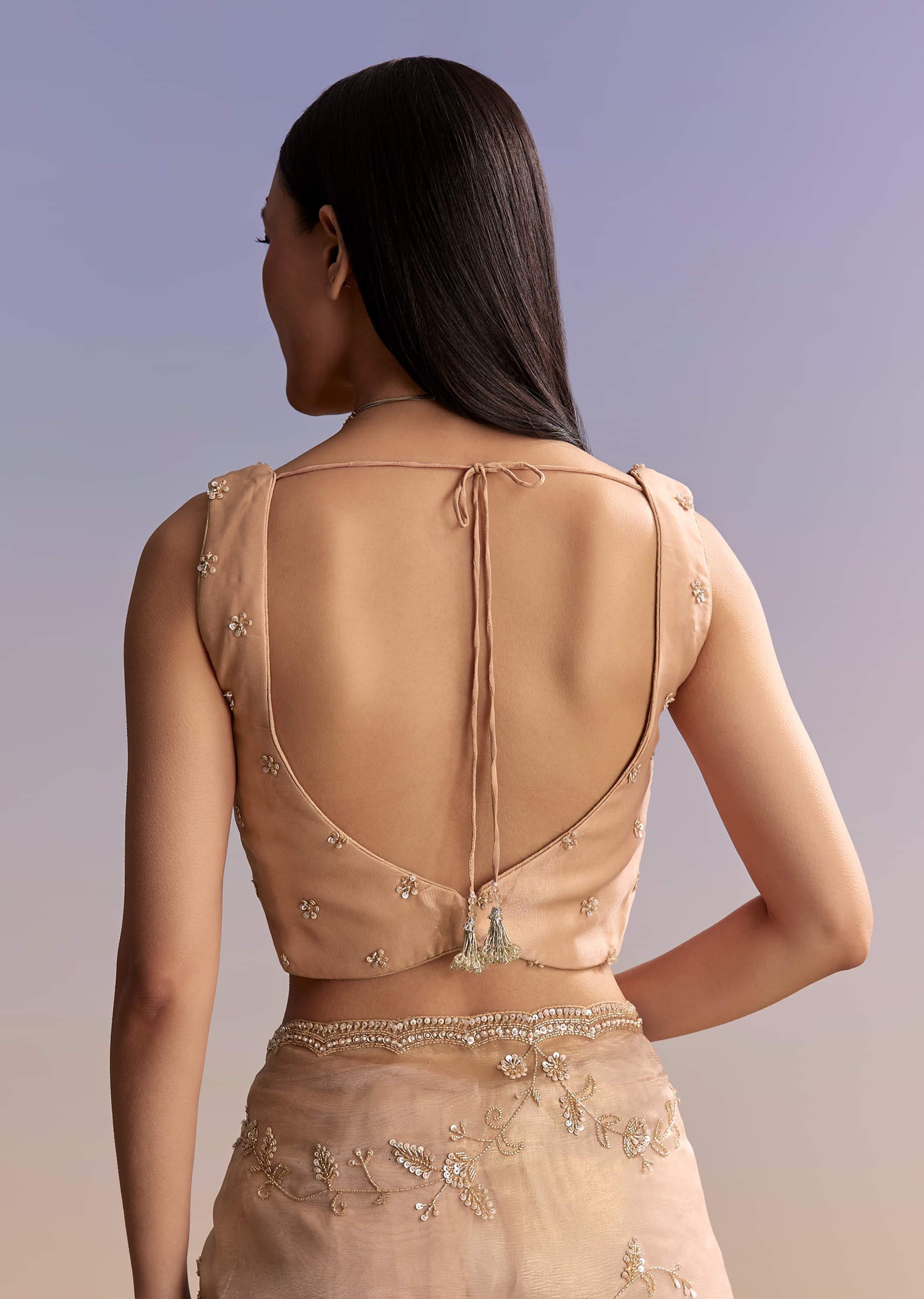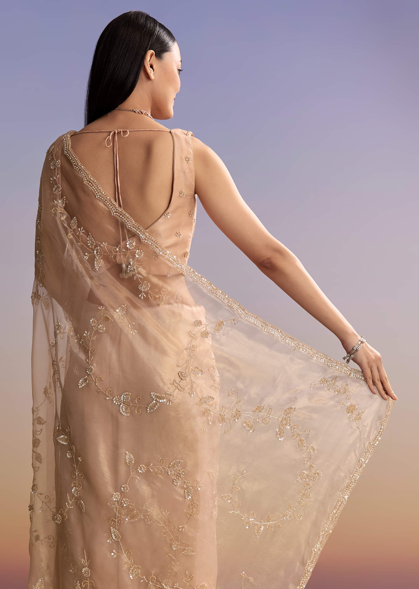 Pink Tissue Embroidered Saree With Sequins And Bead Work
